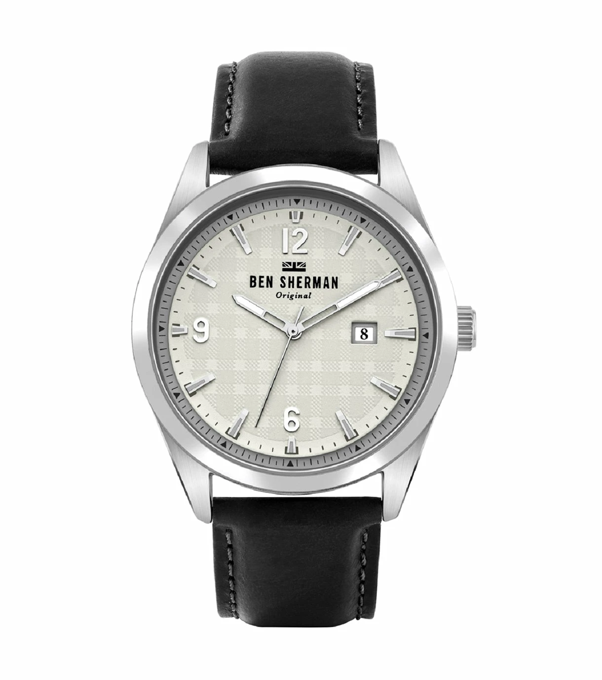 Our Carnaby Check men’s watch is a stylish timepiece that makes a subtle statement with an off-white check-print dial. A silver case and black leather strap complete the look.