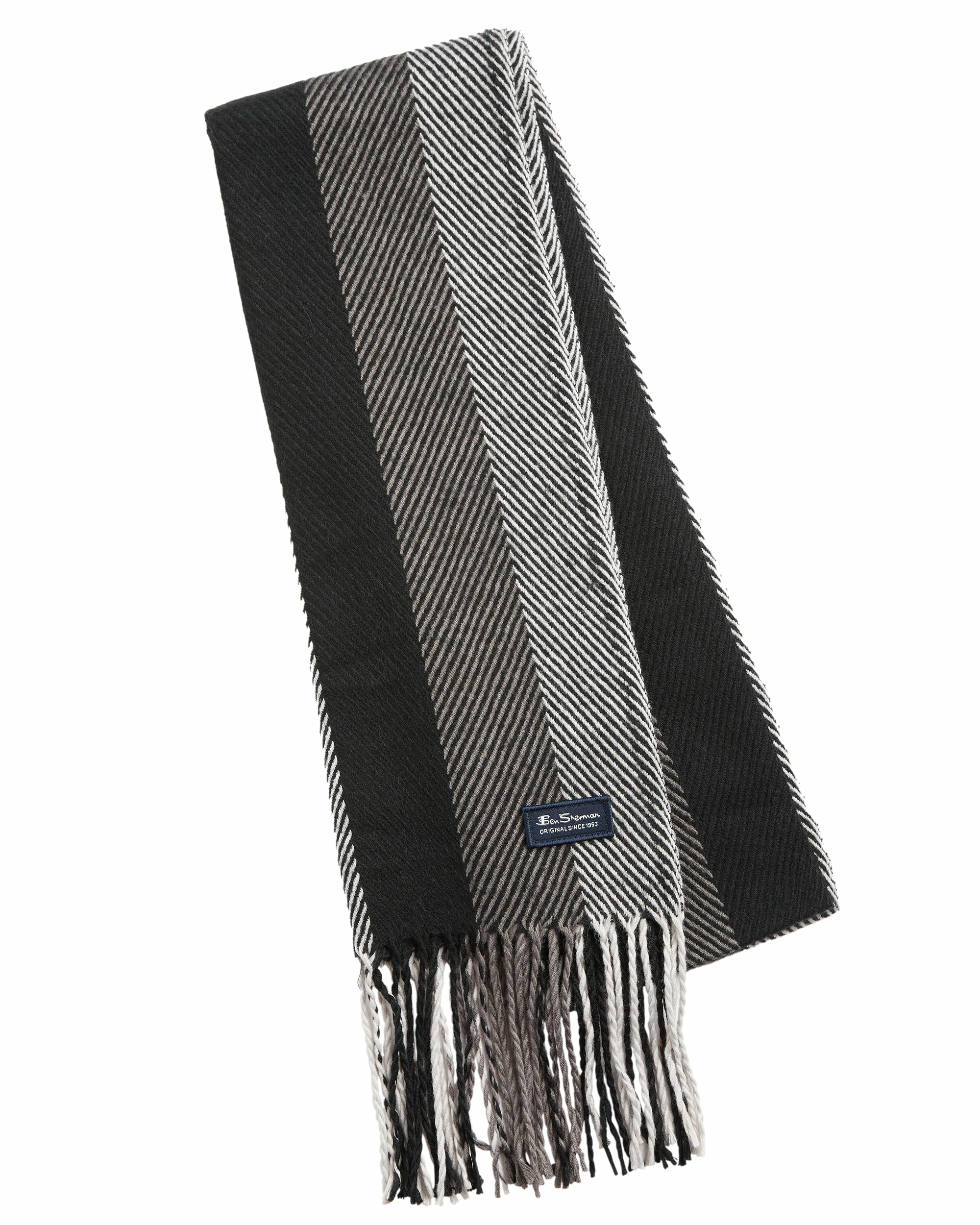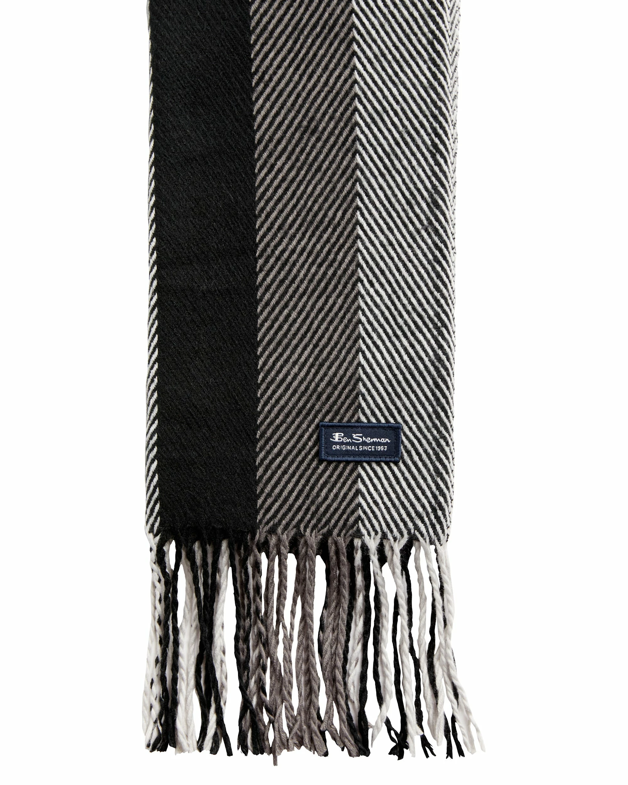 Add warmth and style to your look this season with our herringbone knit scarf.