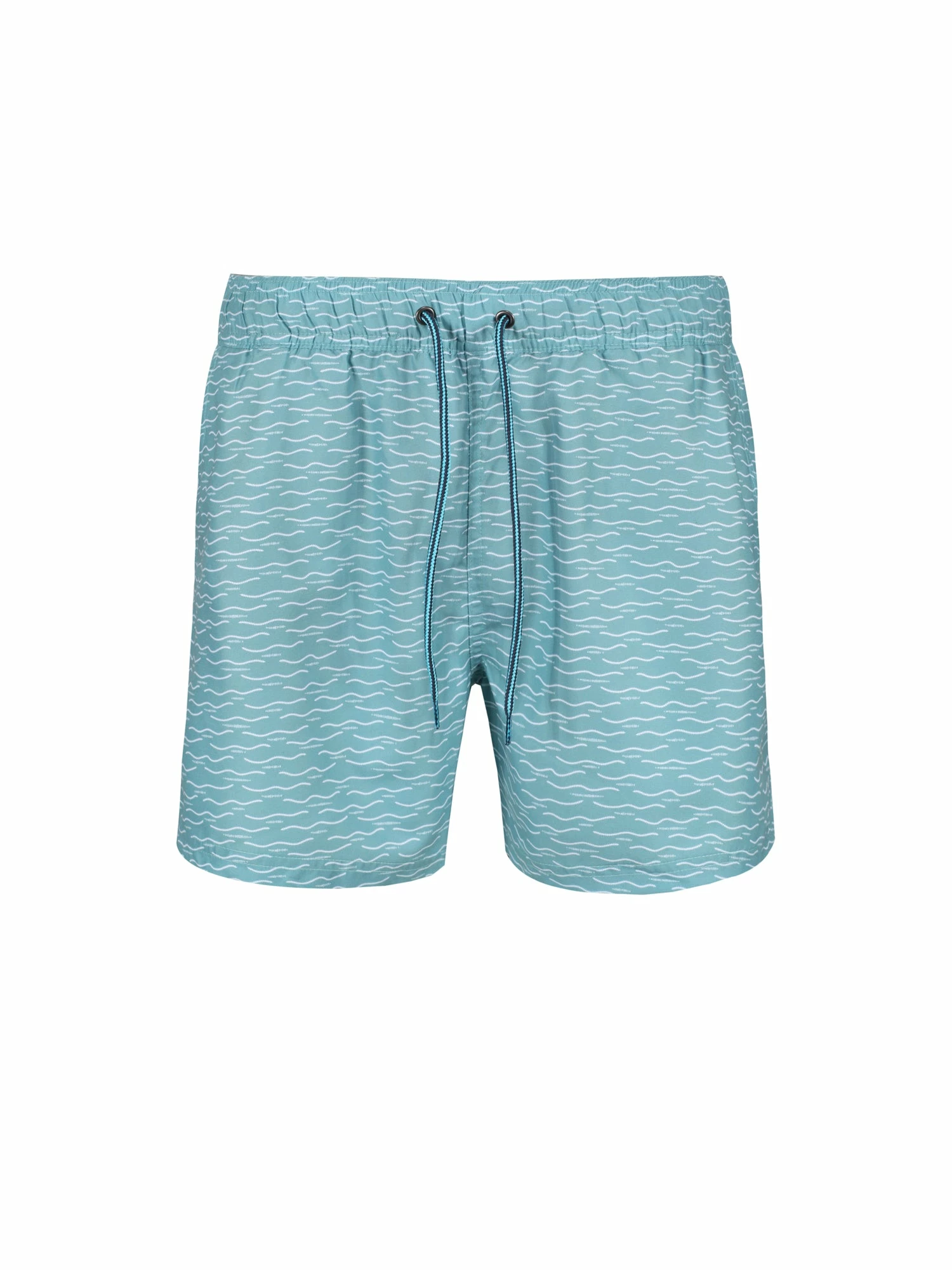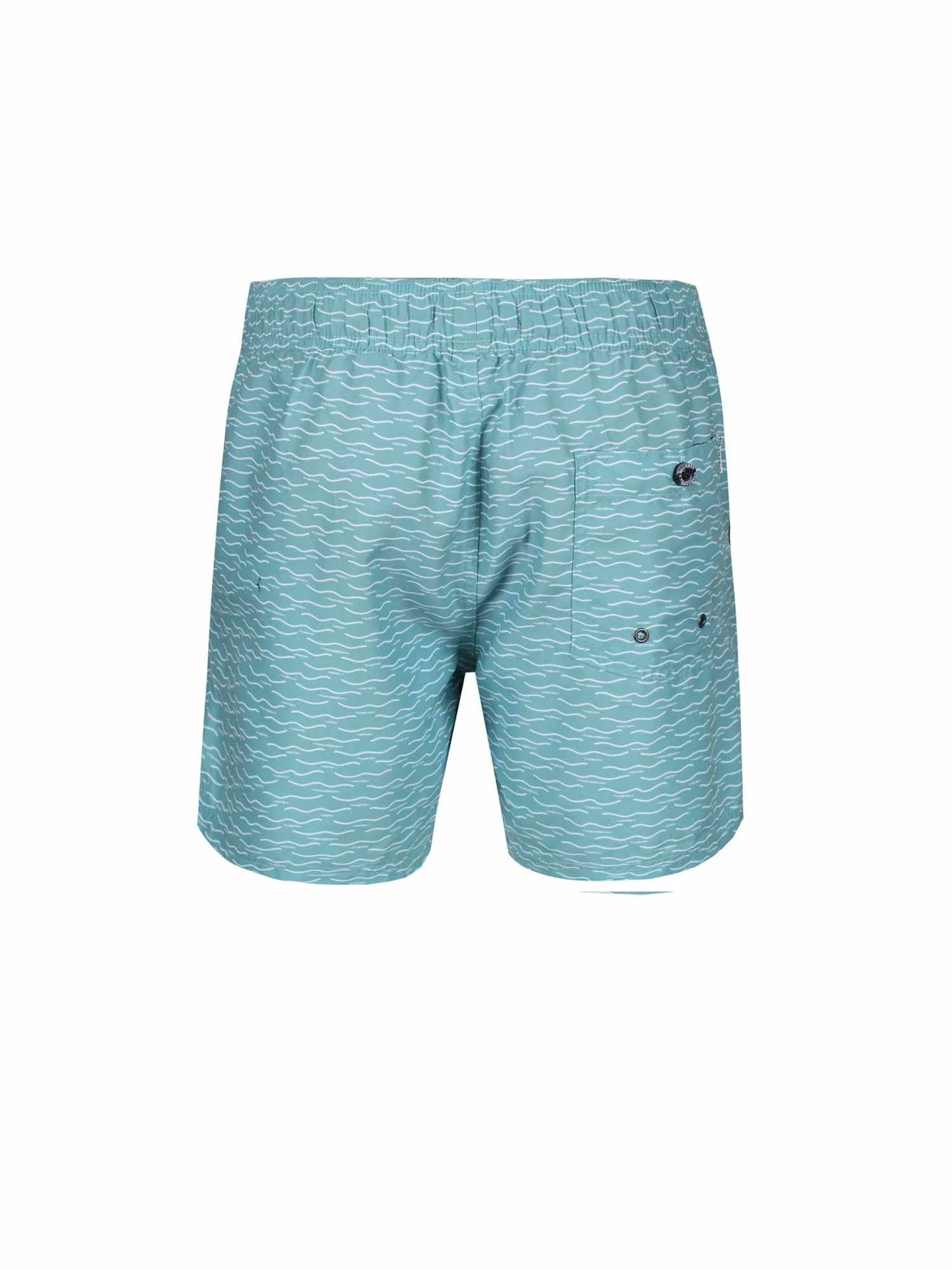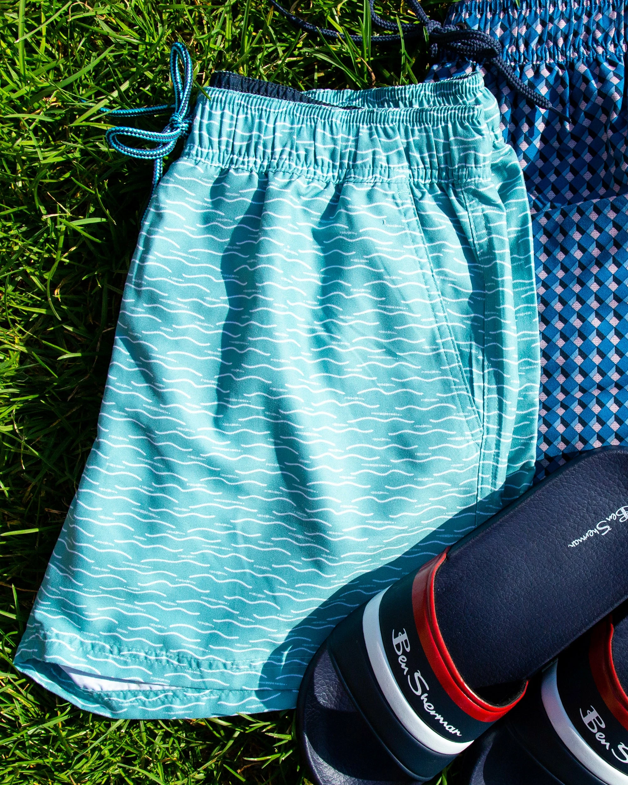Our Navagio swim shorts pop in a casual-cool wave print. The classic trunks feature an elasticated waist with drawstring, mesh lining, versatile pockets, and the iconic Ben Sherman branding. These will take you from the shore to the street.