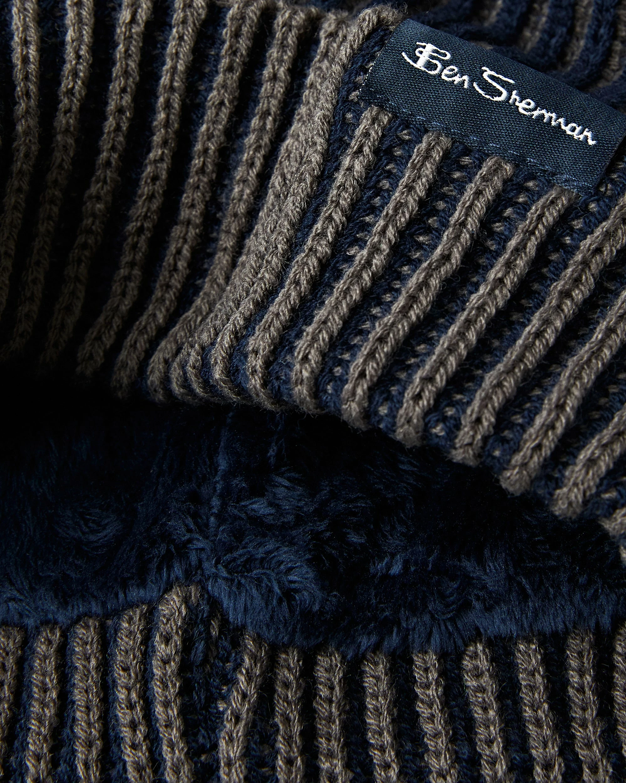Top off your look with our two-tone ribbed knit hat, an updated cold-weather classic. This style features a thermal-plush lining for cozy warmth.