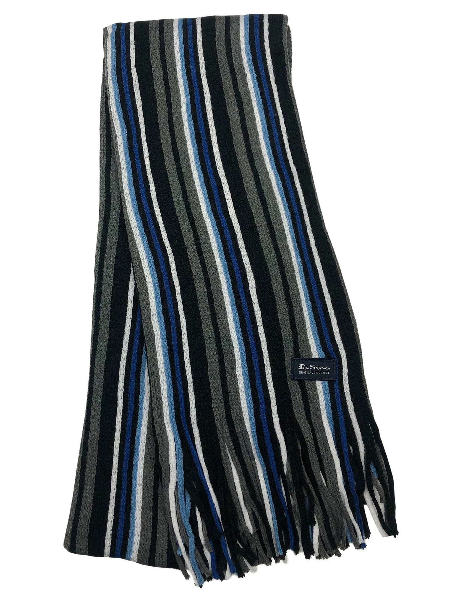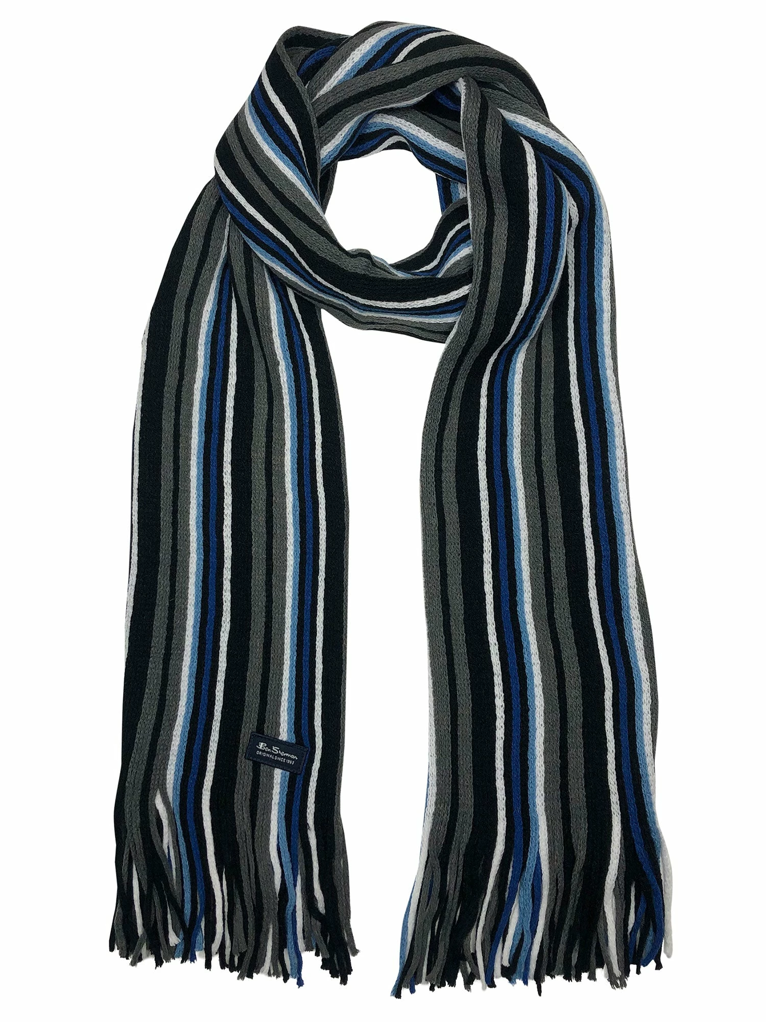 Add warmth and style to your look this season with our rochelle striped knit scarf.