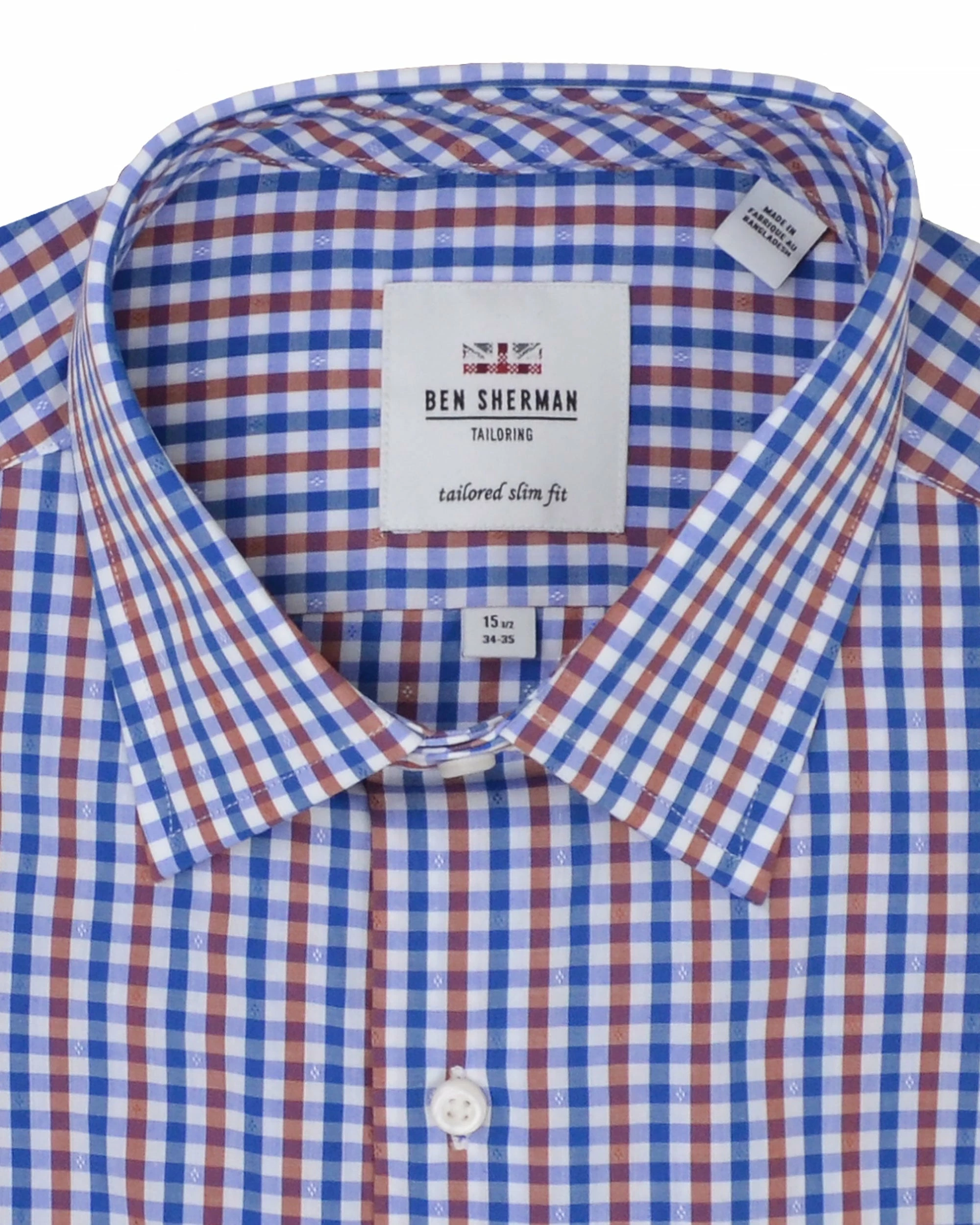 The Multi Dobby Gingham Dress Shirt is cut to a slim fit with 100% cotton and dobby texturing. Multi gingham pattern gives an instant wardrobe update.