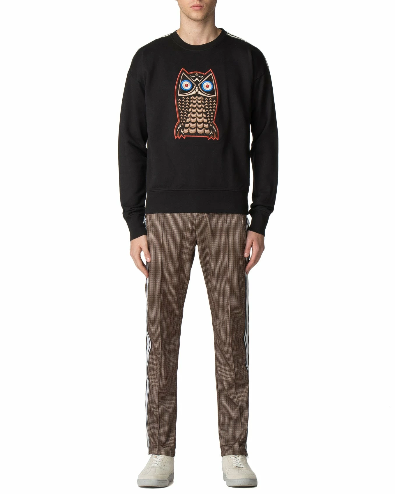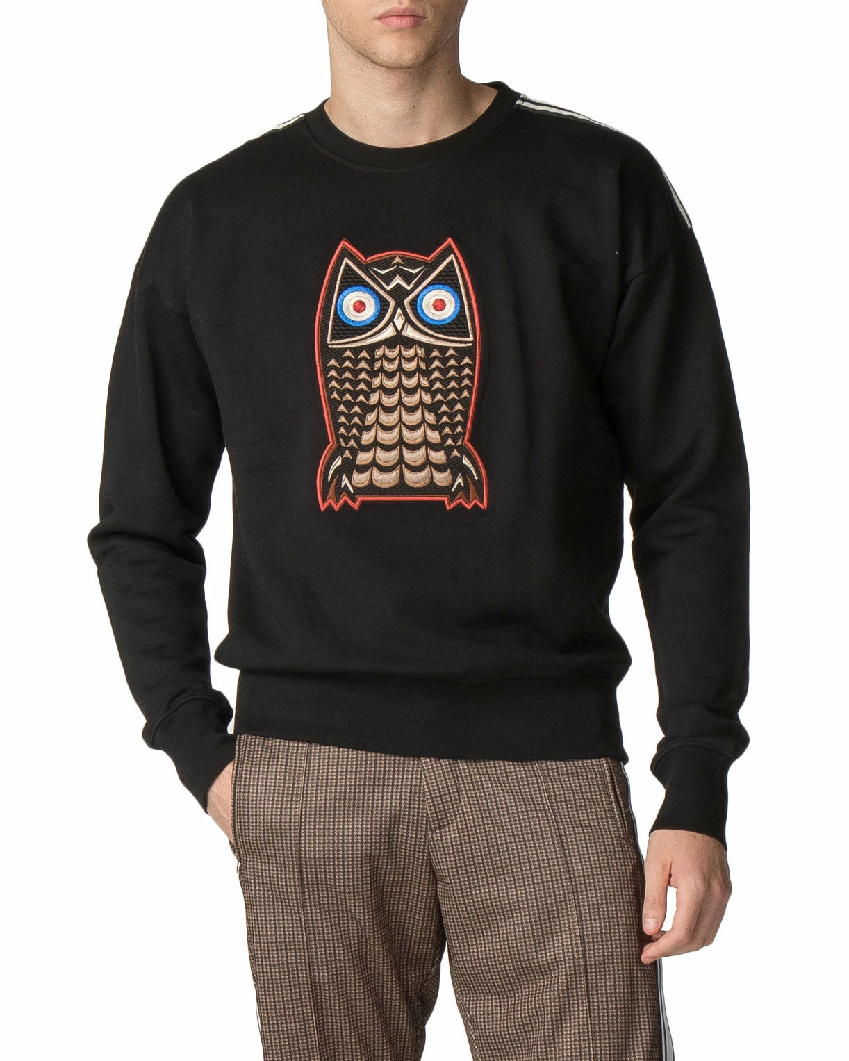 As seen on the catwalk at London Fashion Week, this mercerized-cotton crew sweatshirt features a night owl badge and shoulder stripe details. The unique design accents elevate the classic crew-neck sweat silhouette.