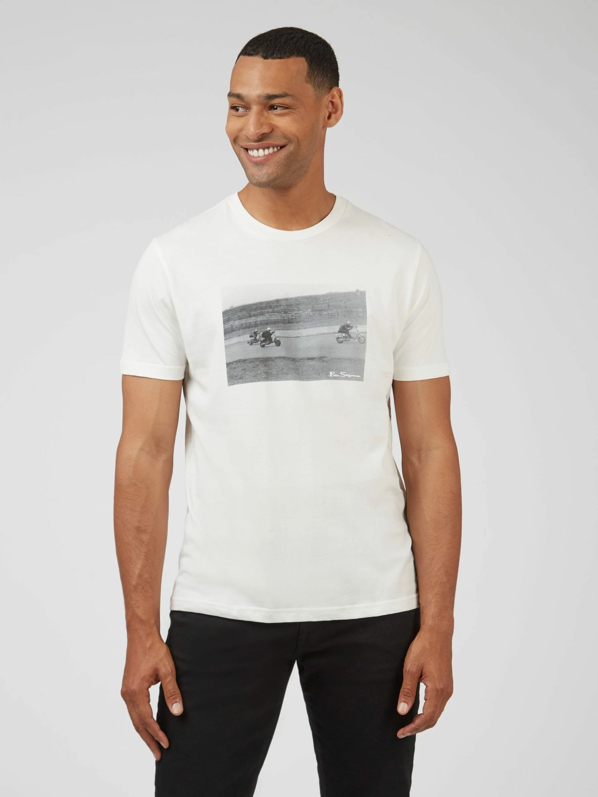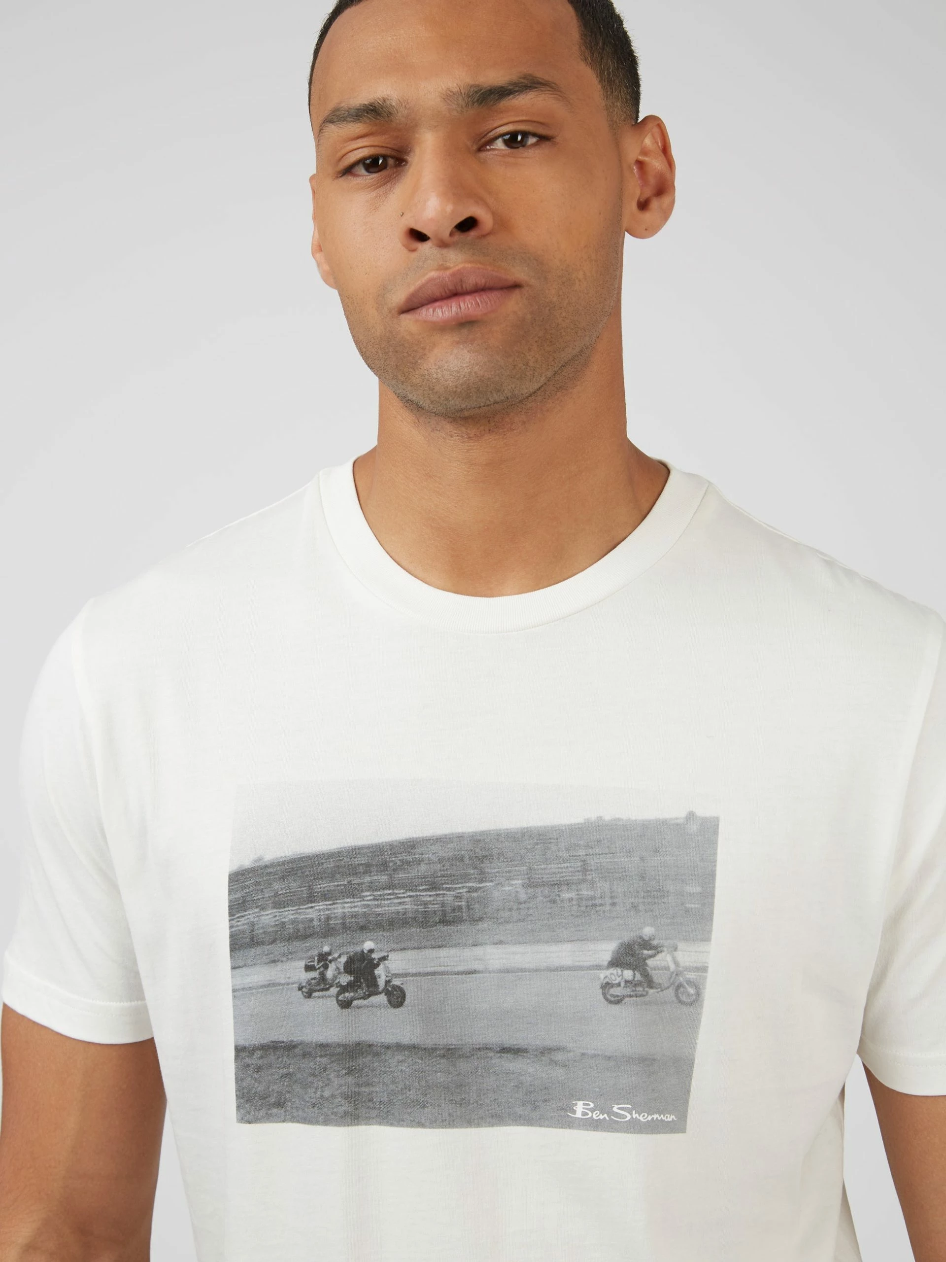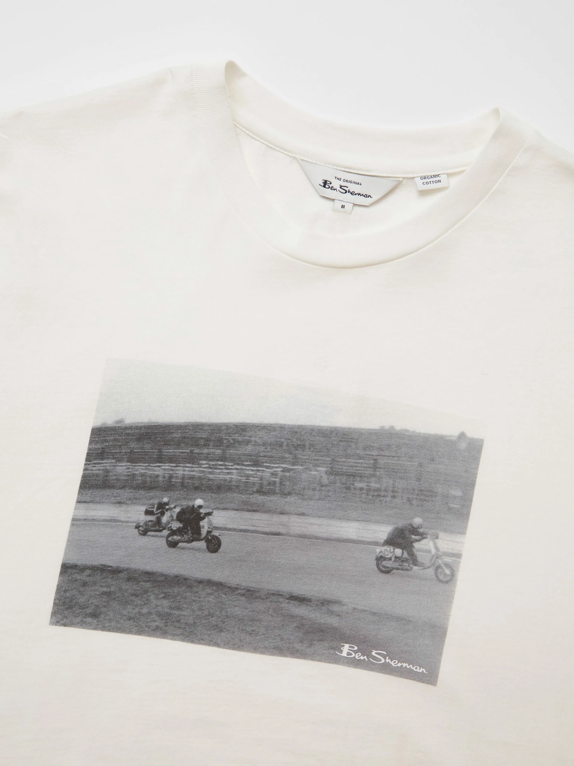 100% GOTS certified organic cotton jersey graphic t-shirt in a regular fit. With a nod to our heritage, this tee features a photographic scooter race chest print.