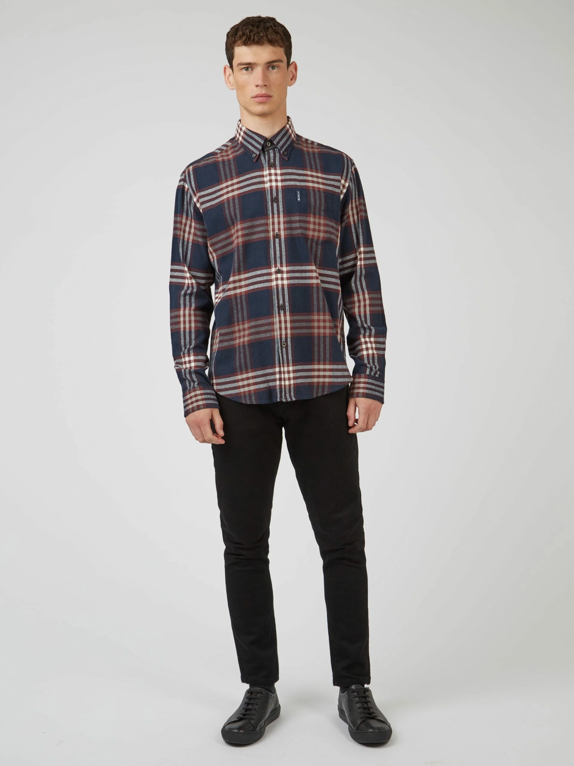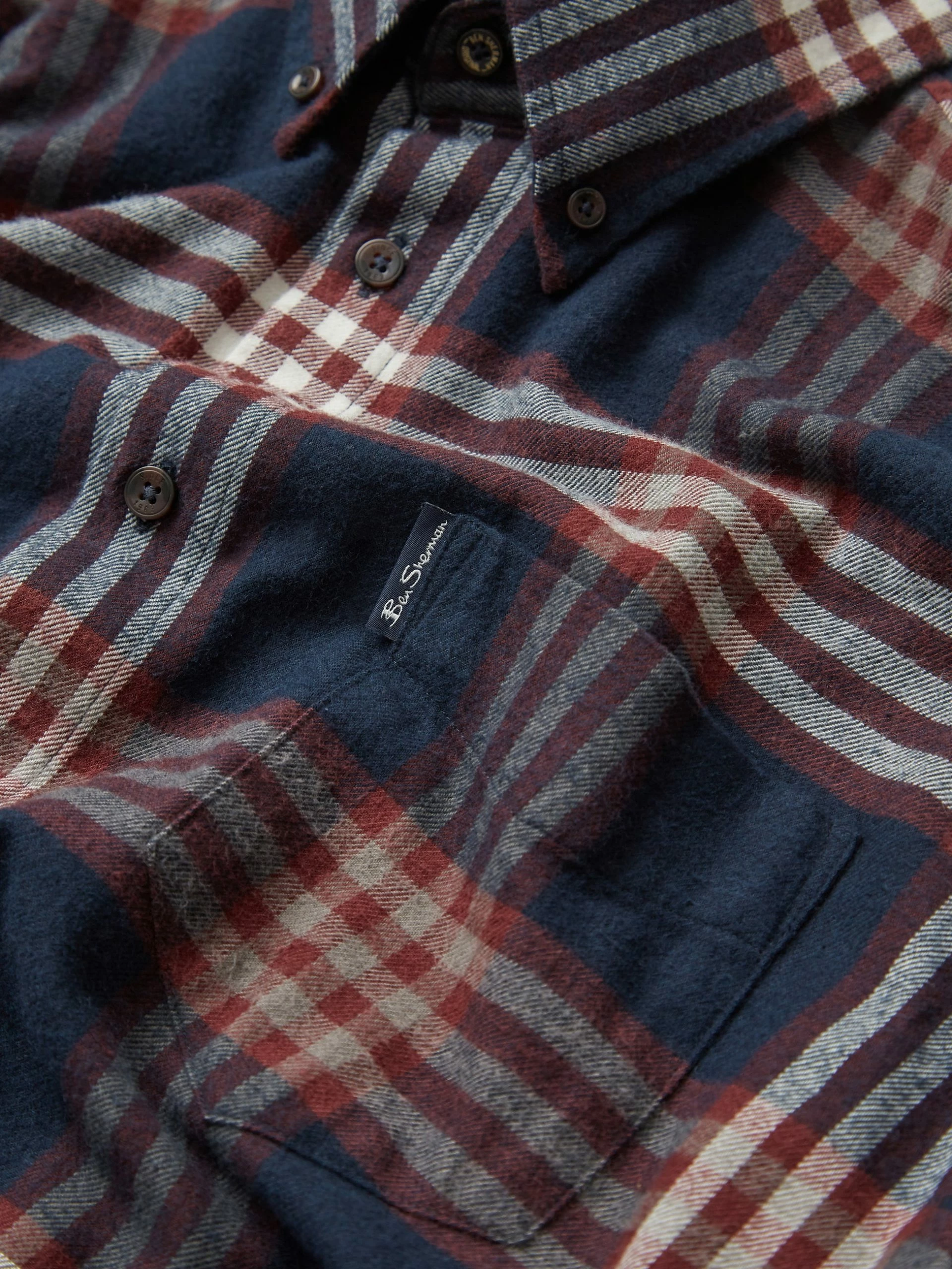 This oversized brushed check shirt from Ben Sherman comes in a relaxed fit with long sleeves and features a classic 3 finger button down collar. Made from 84% cotton 14% viscose.