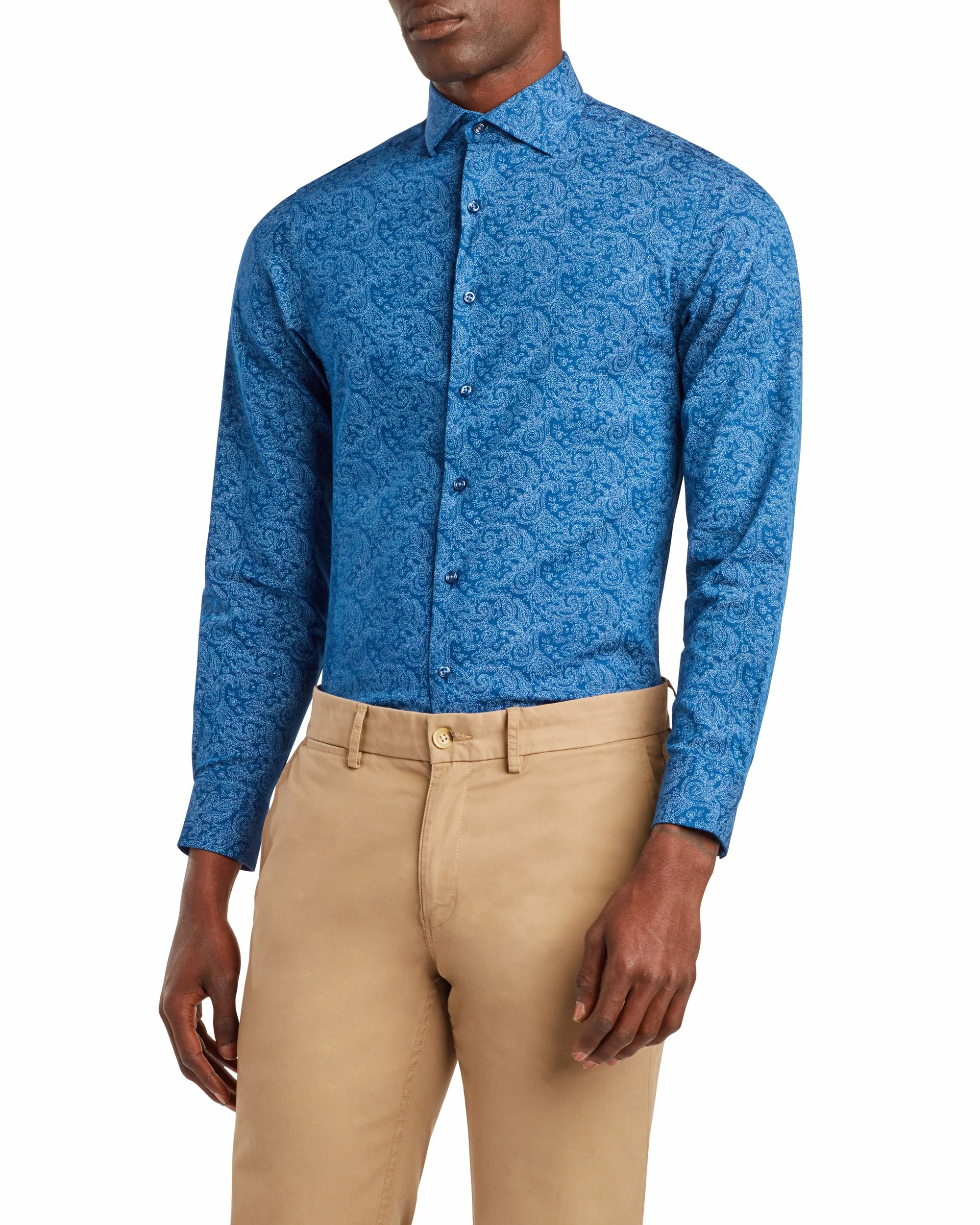 Blue Paisley Print Dress Shirt