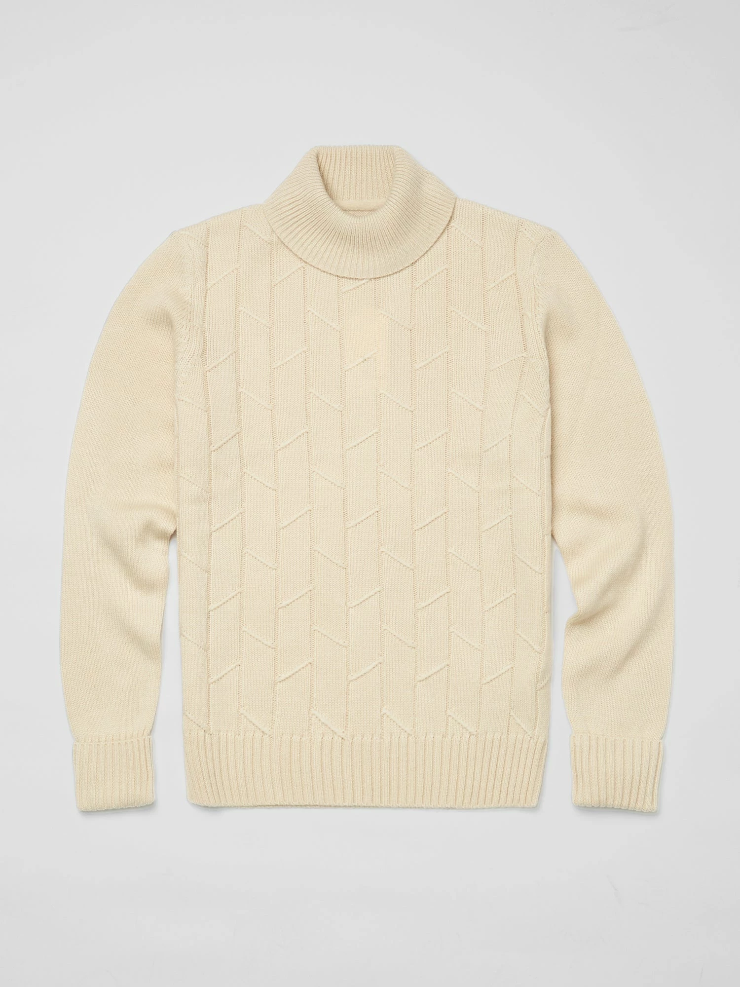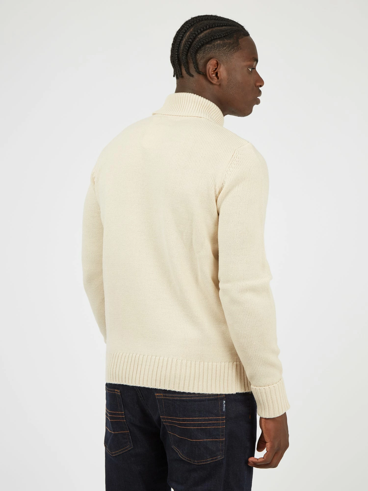 This wool-blend, chunky-knit roll-neck crewneck jumper is designed with diagonal textured knit to the front and is branded with the Ben Sherman side-tab label. Ribbed hem and cuffs complete the look.