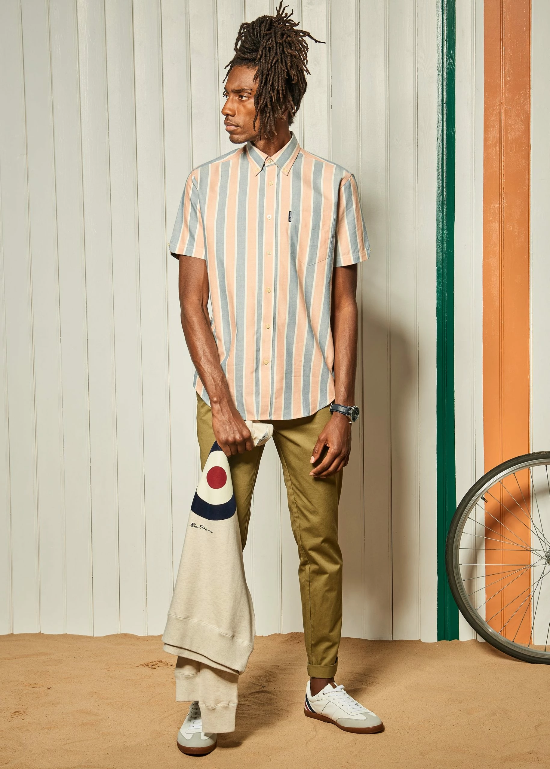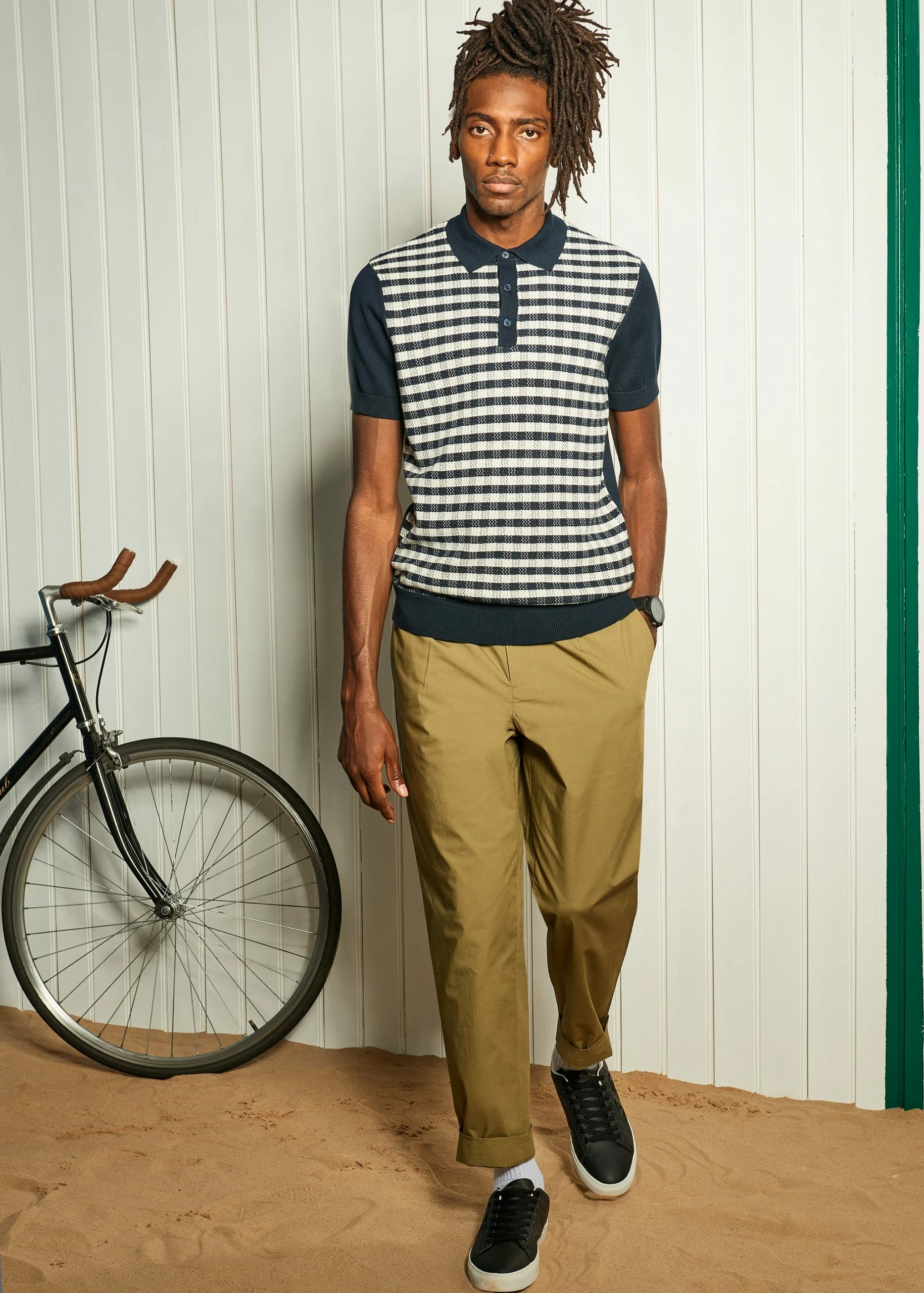 A relaxed-taper fit trouser in a cotton poplin fabric, this pant features two side-seam pockets, two welt pockets, and pleating detail in the front.