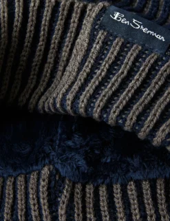 Men’s Rochelle Knit Scarf & Hat Set – Navy Blazer/Cornstalk/Sun-Dried Tomato
