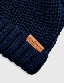 Men’s Ribbed Knit Hat With Thermal Plush Lining – Navy Blazer/Odyssey Grey