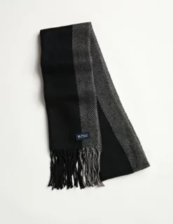 Men’s Striped Herringbone Scarf – True Black/Granite Grey