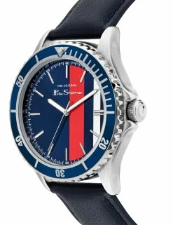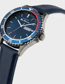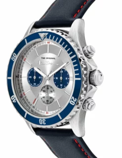 Men’s Leather Strap Watch, 44mm – Navy/Blue/Silver