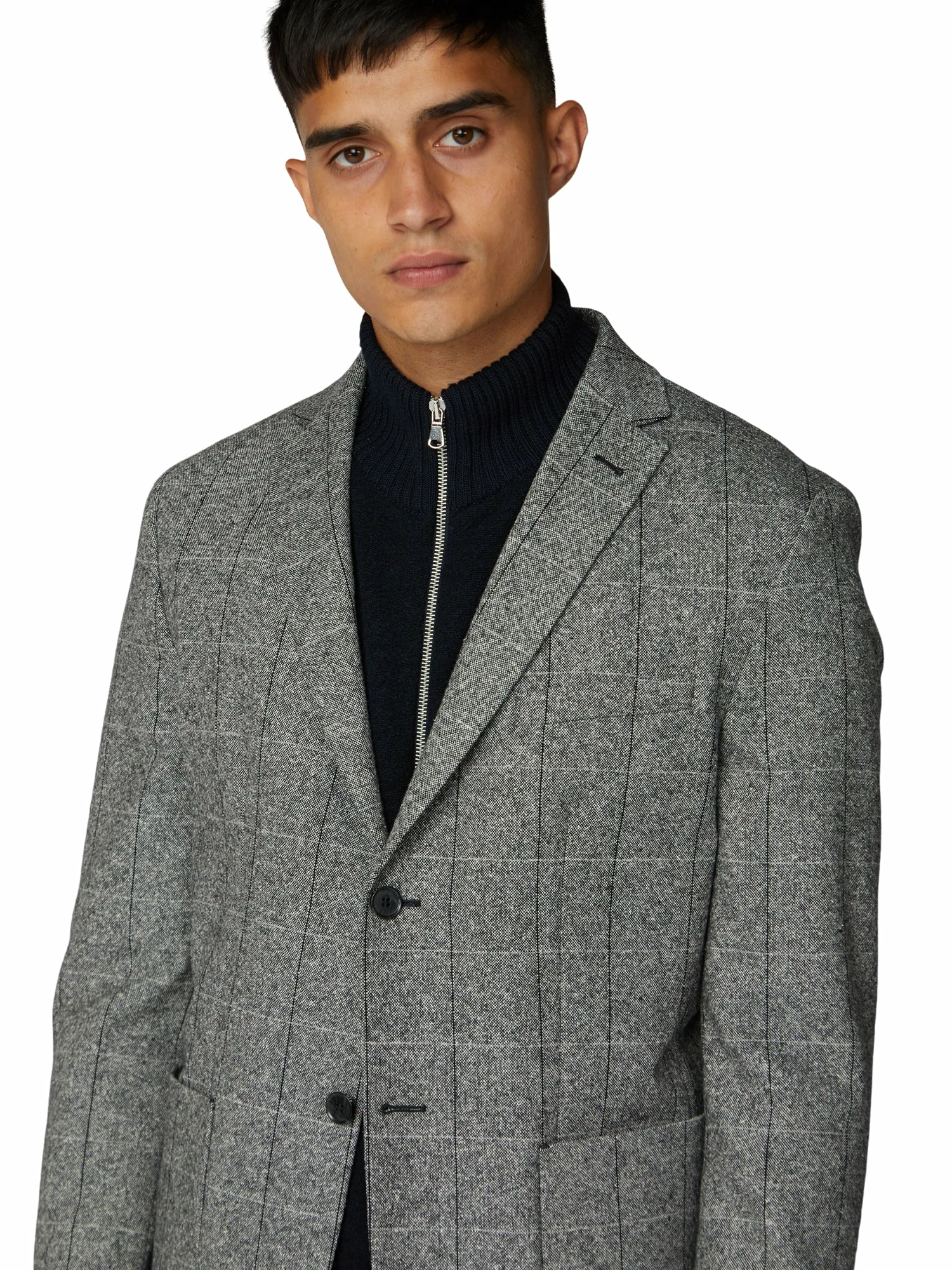 With a soft, lightweight wool blend fabric, this salt and pepper patterned blazer boasts a unique checked design and a button-up front. The comfortable, regular-fit jacket combines original British tailoring with a lightweight layering piece to create the ideal wardrobe staple.