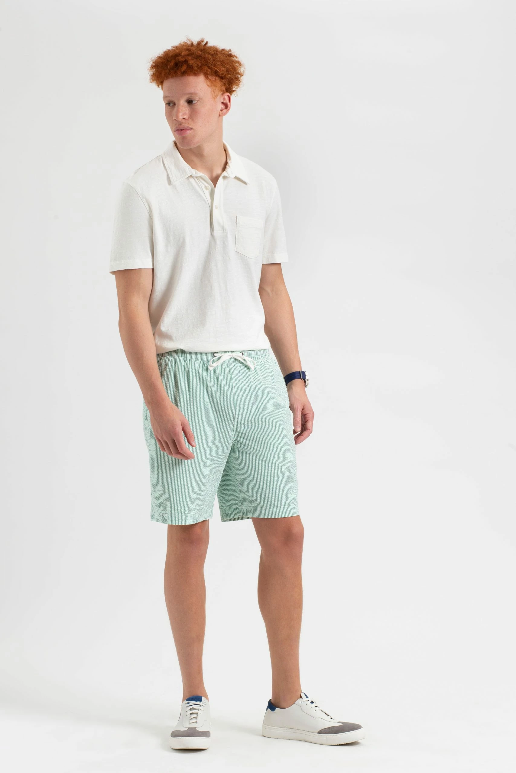 Using performance seersucker, we have tailored this short in our best selling slim fit cut to hit just above the knee.