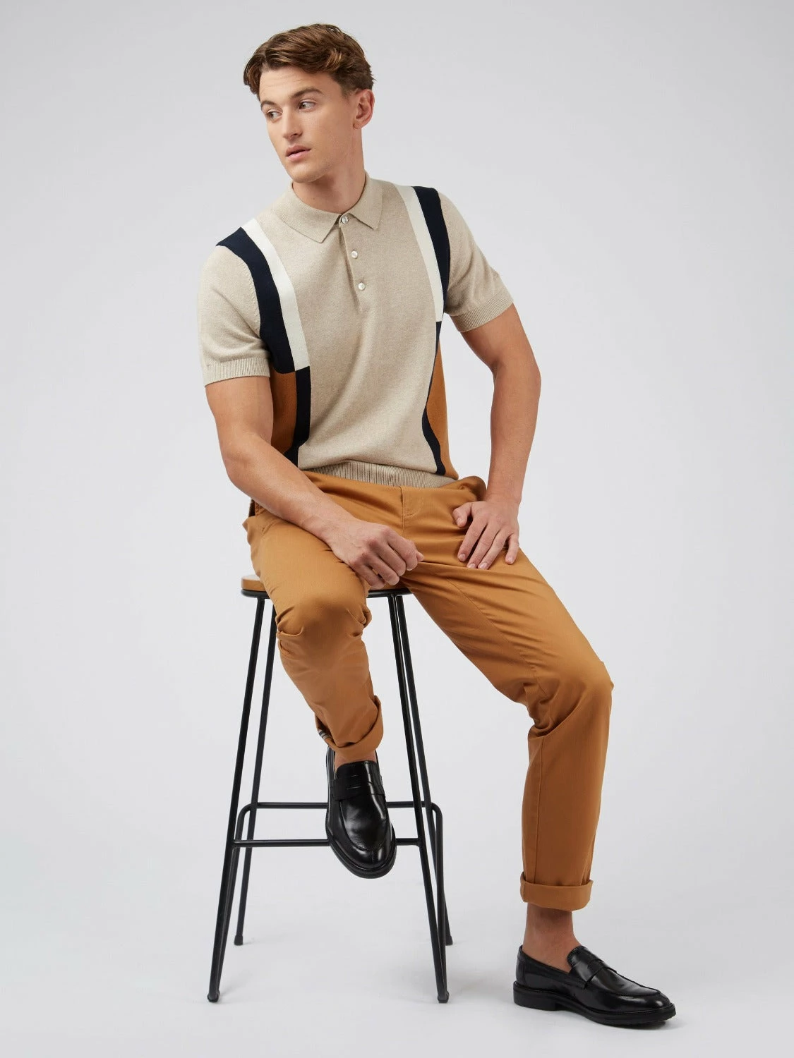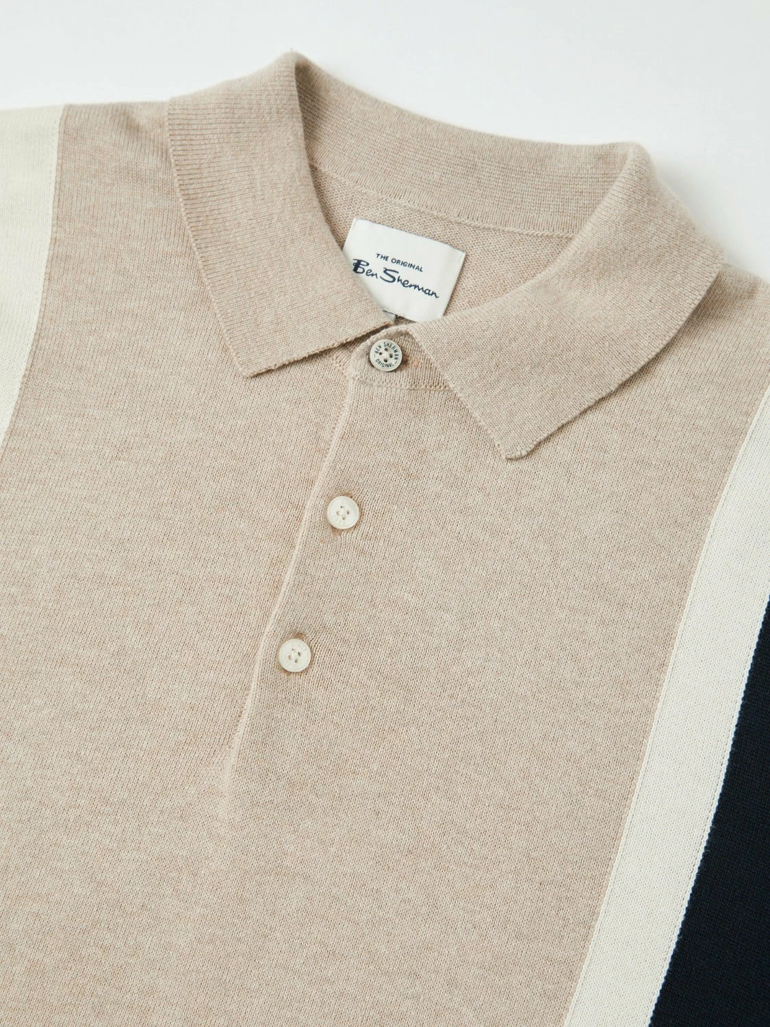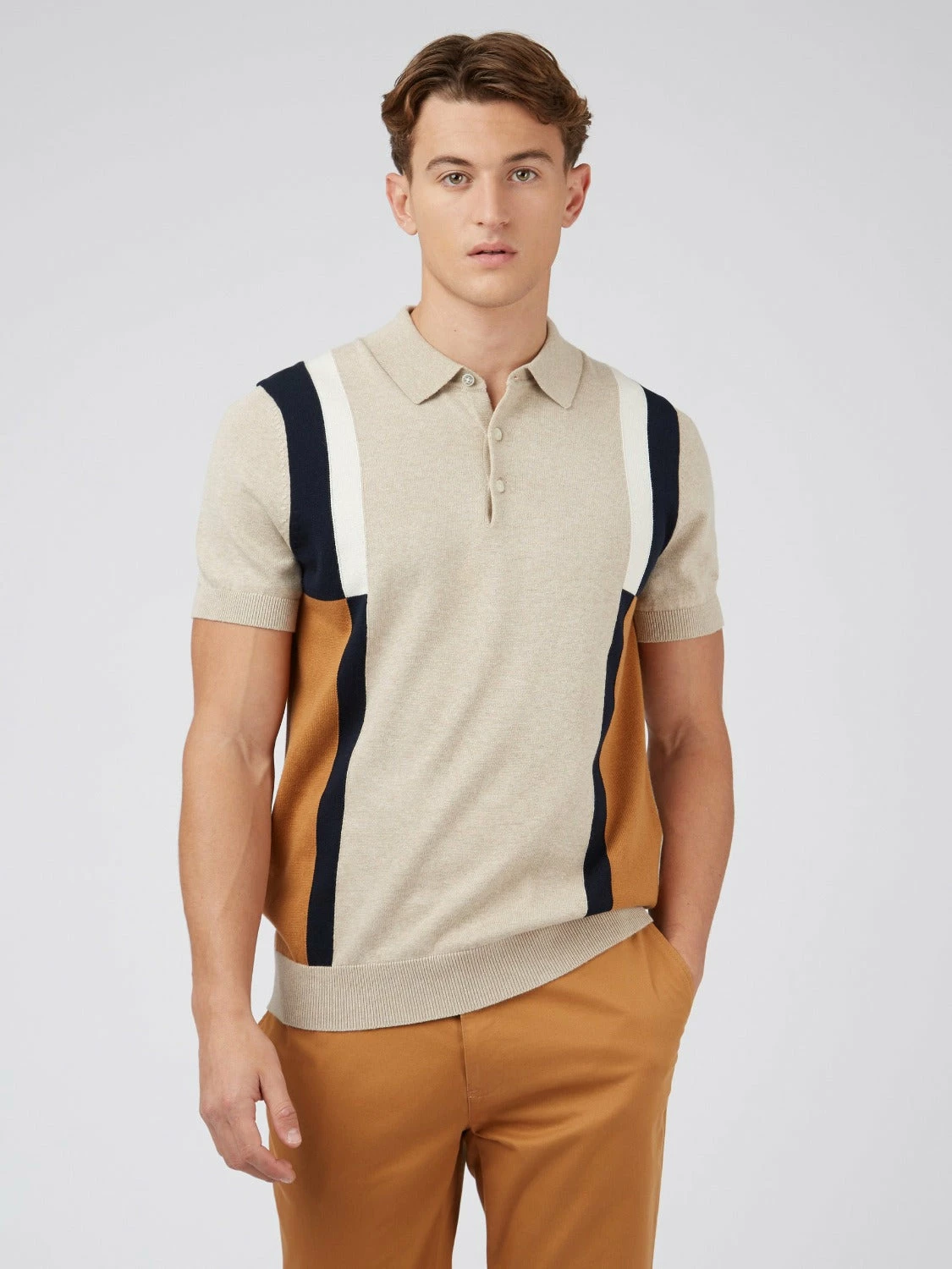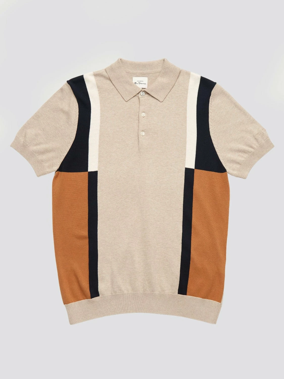 A more minimal take on our signature mod stripe polo. Designed with colour blocked panels to the front in a regular fit. Branded with a tonal signature “Ben Sherman” sleeve embroidery. 100% cotton