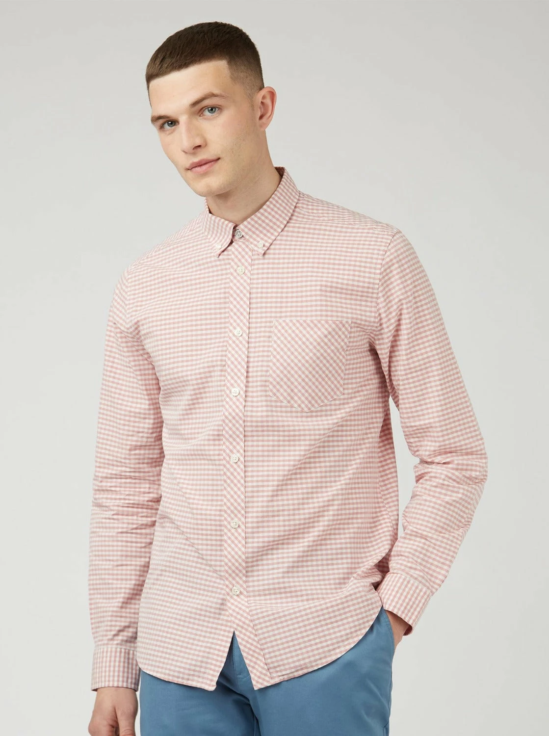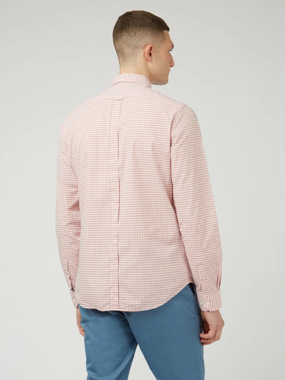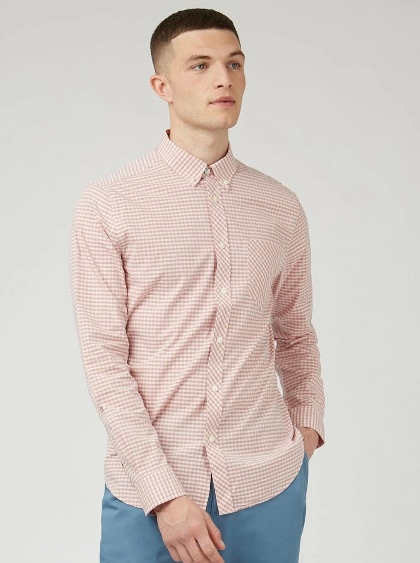 Our signature long sleeve gingham shirt features a two finger button down collar and tab branding on the chest pocket. This regular fit style is finished with a back box pleat for comfort.