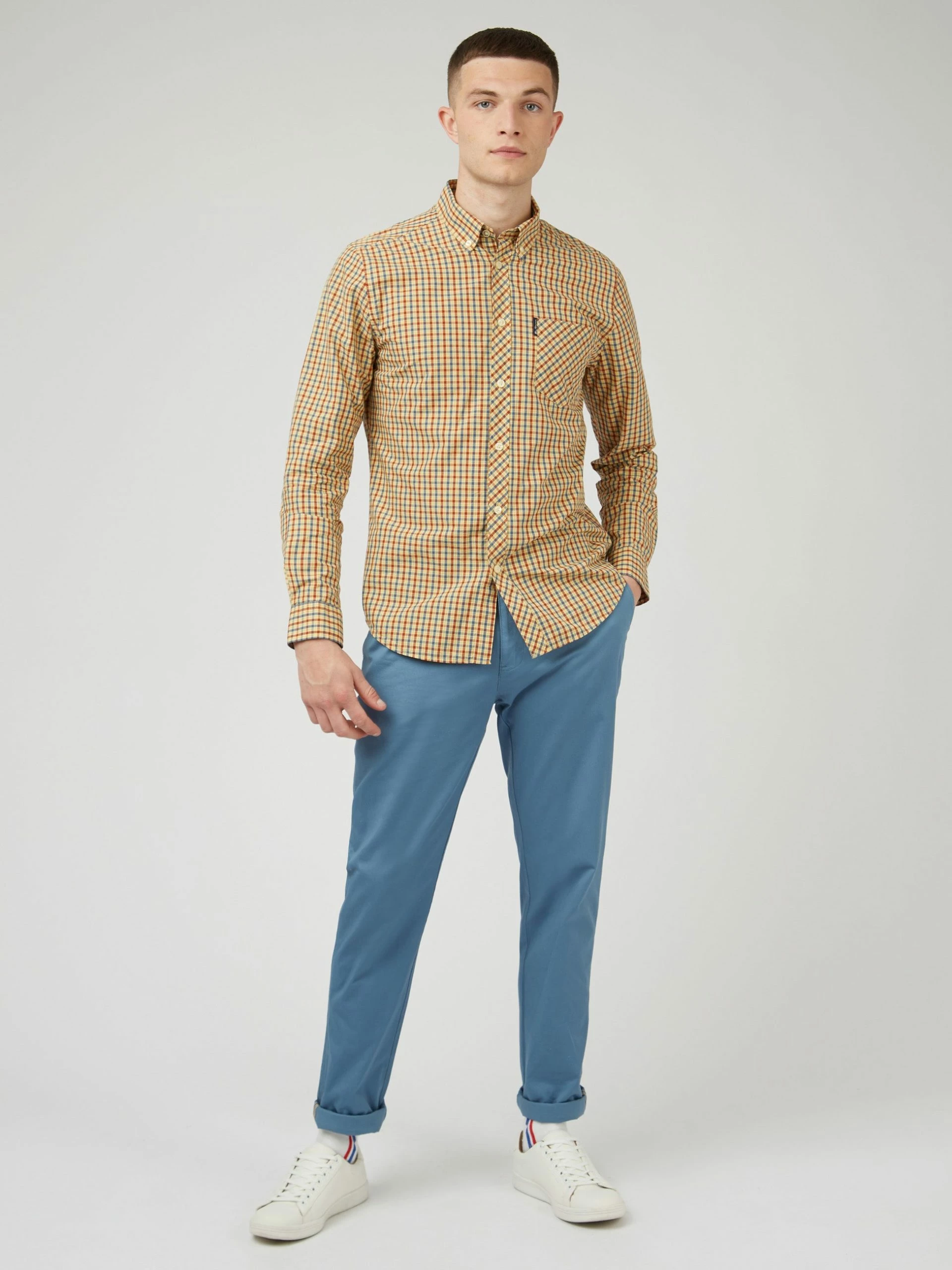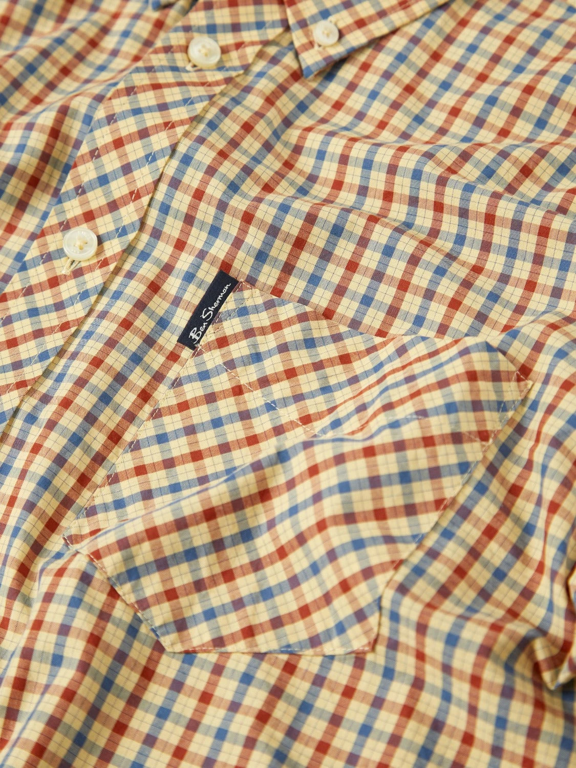 The house check is a classic Ben Sherman style. This long sleeve shirt is made from 100% cotton and features a two finger button down collar with tab branding on the chest pocket.Â