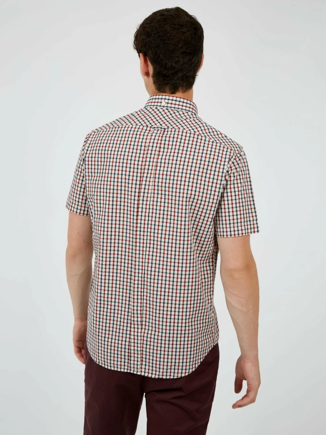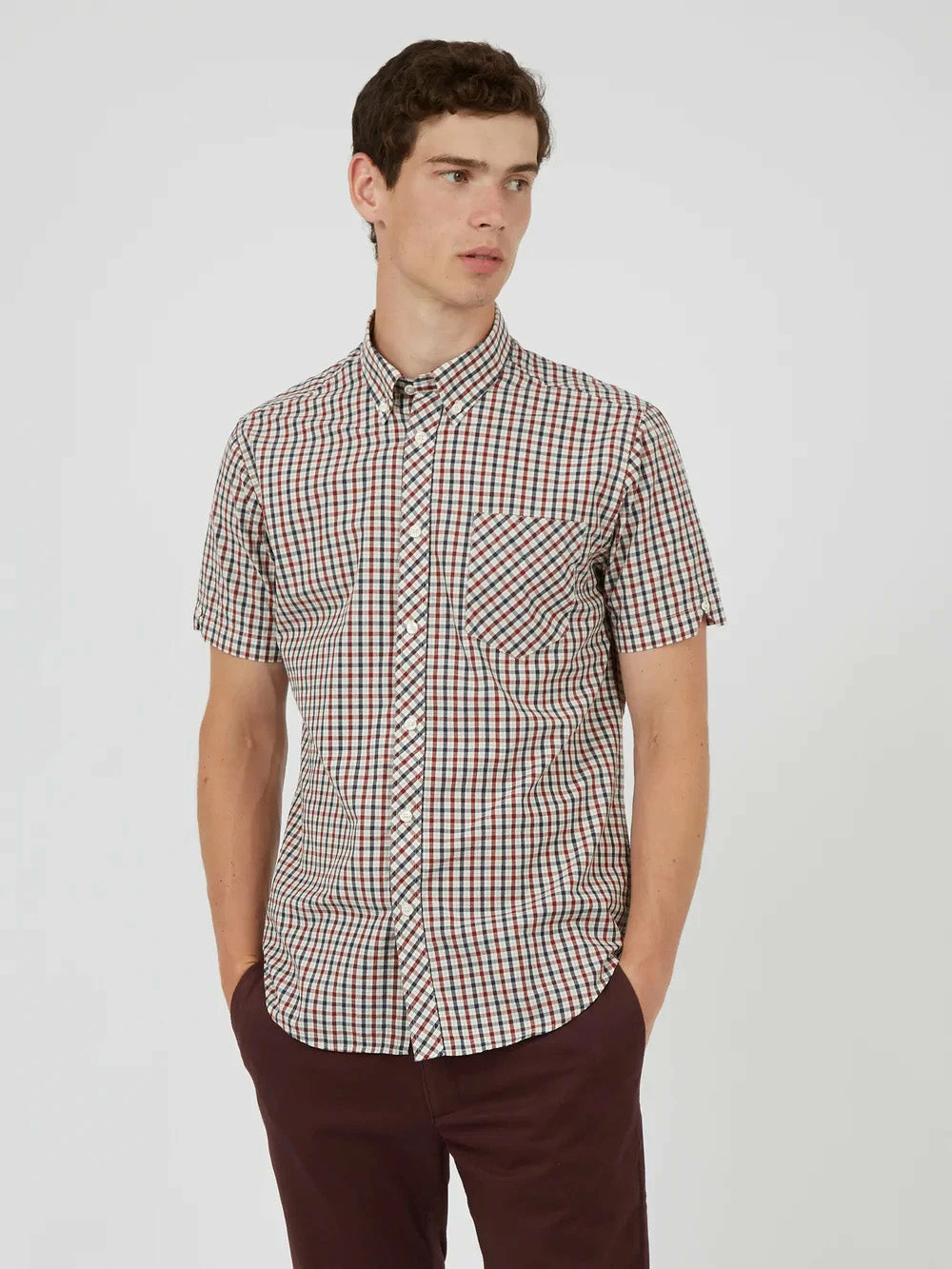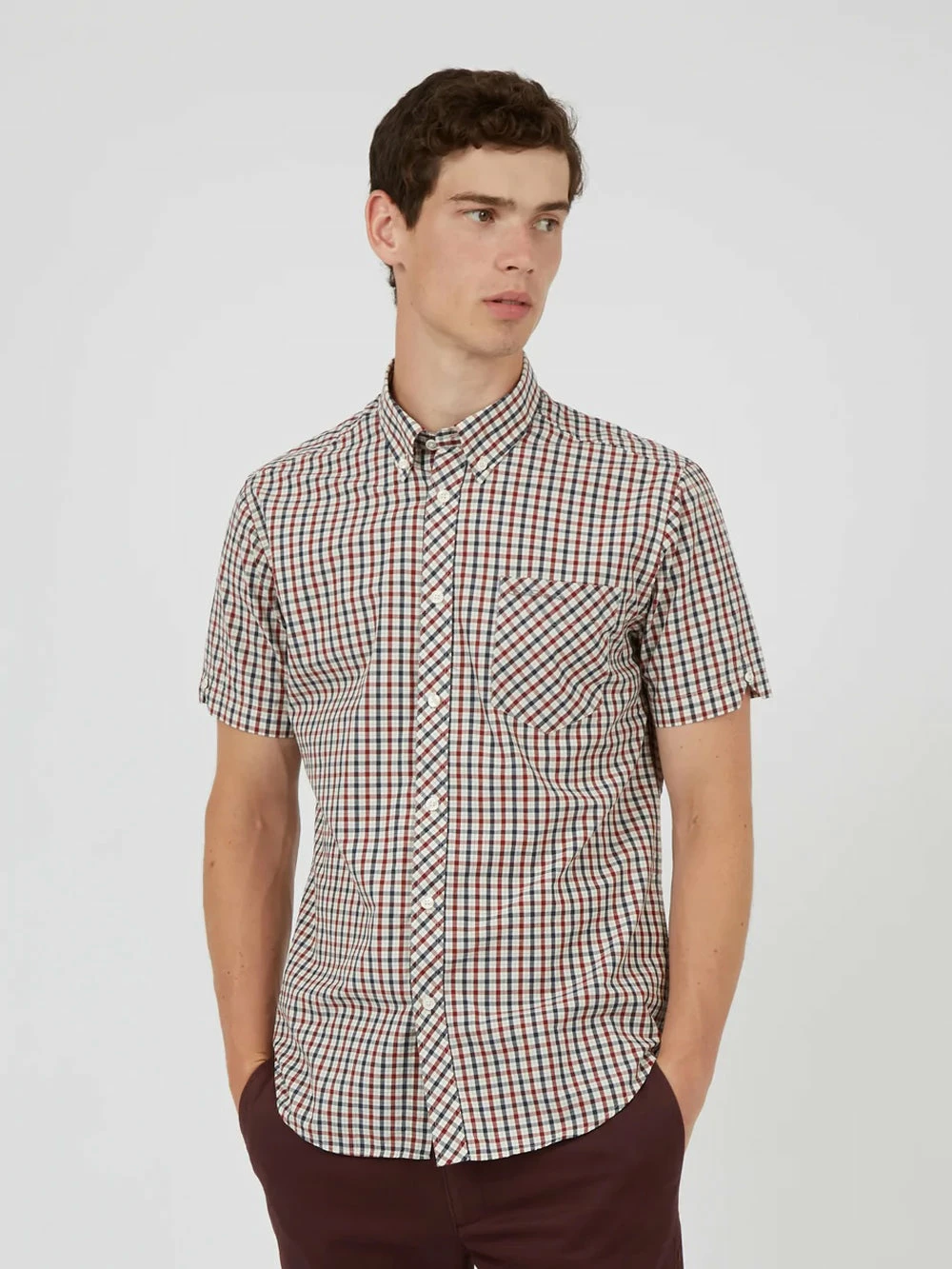 From our core collection, our original check shirt is a modern classic. Cut from a lightweight checkered fabric, this shirt is styled with a two-finger, button-down collar and tab branding.