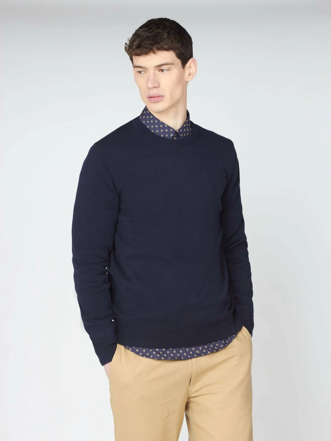 A wardrobe staple for the cooler seasons, our solid knit sweater has a crew neckline.