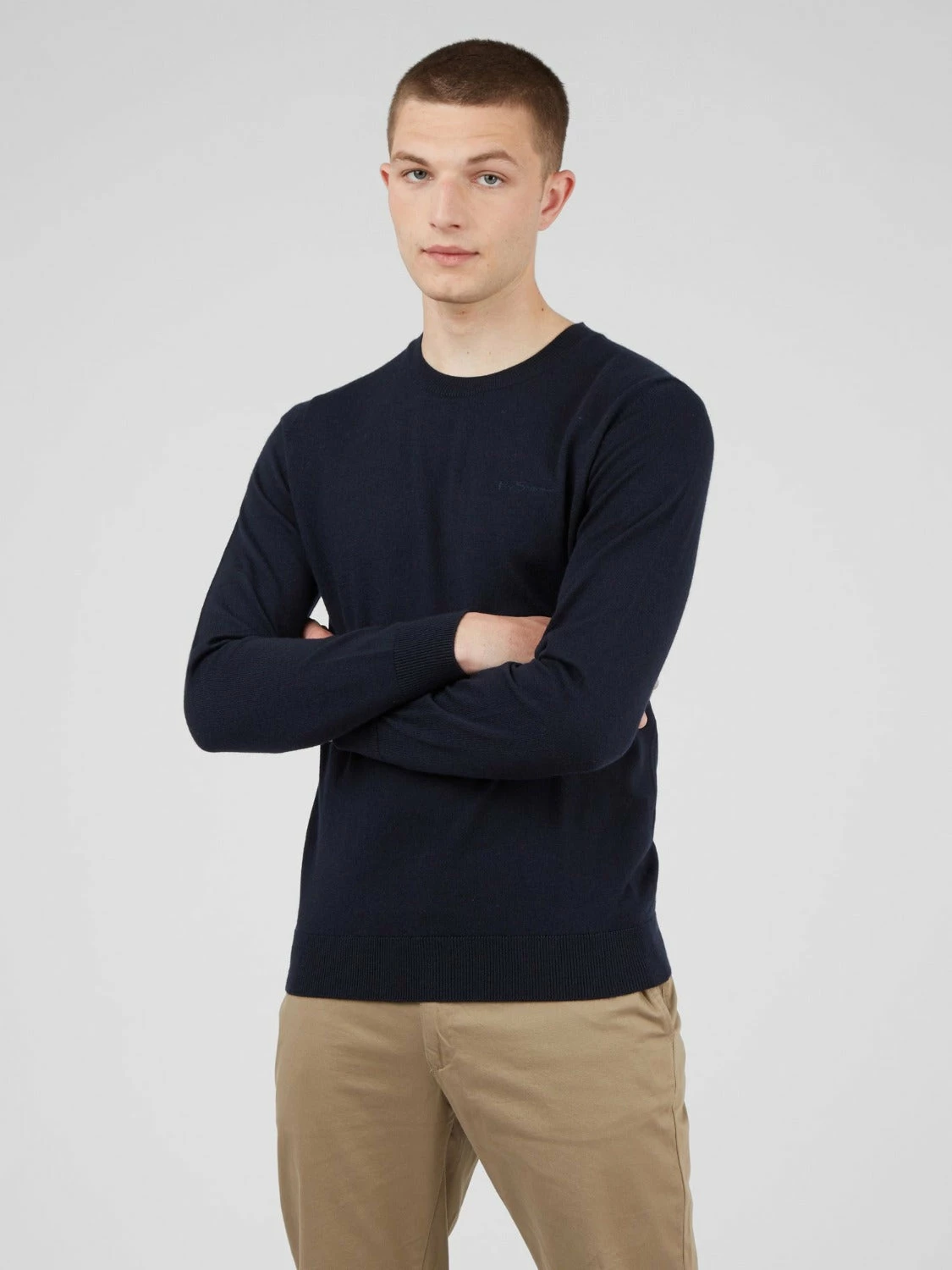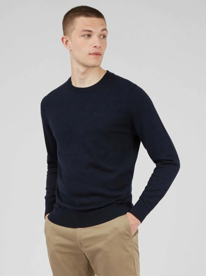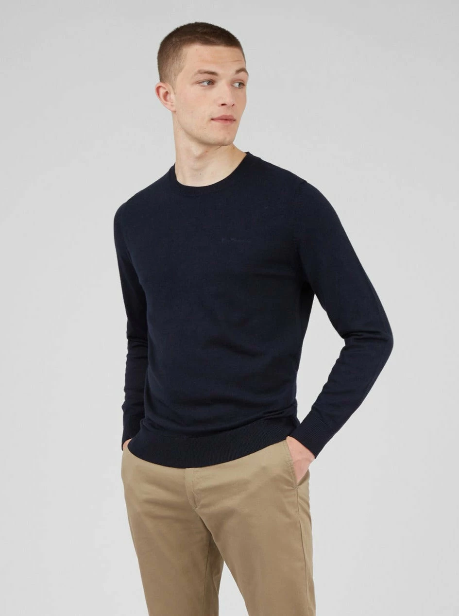 Our signature knitted crew neck jumper in a merino wool blend and a regular fit, a staple piece for the Autumn/Winter season. Features include a tonal “Ben Sherman” chest embroidery.