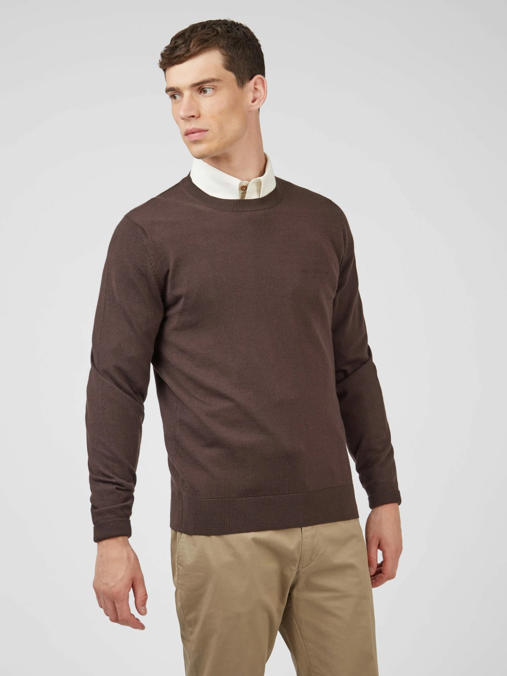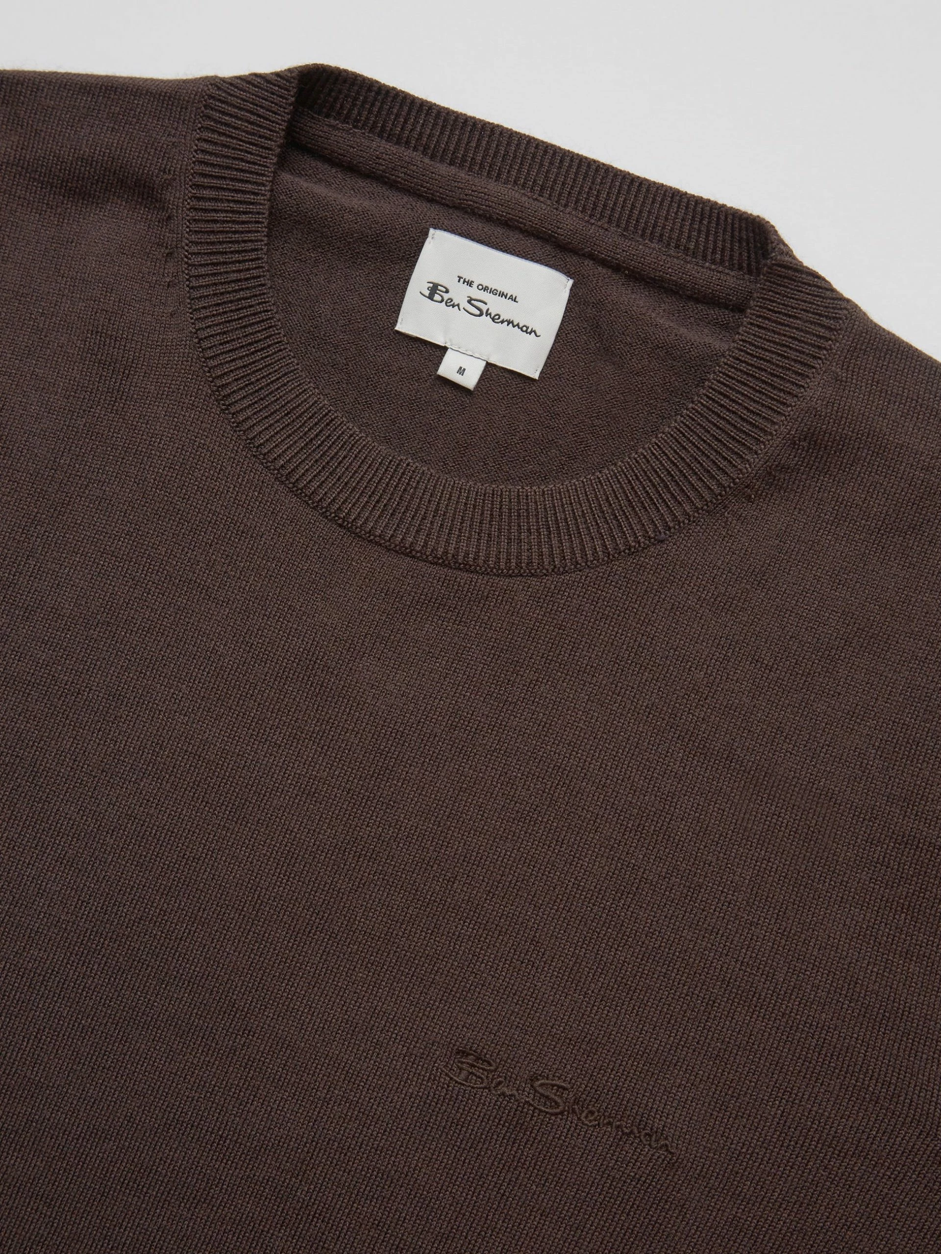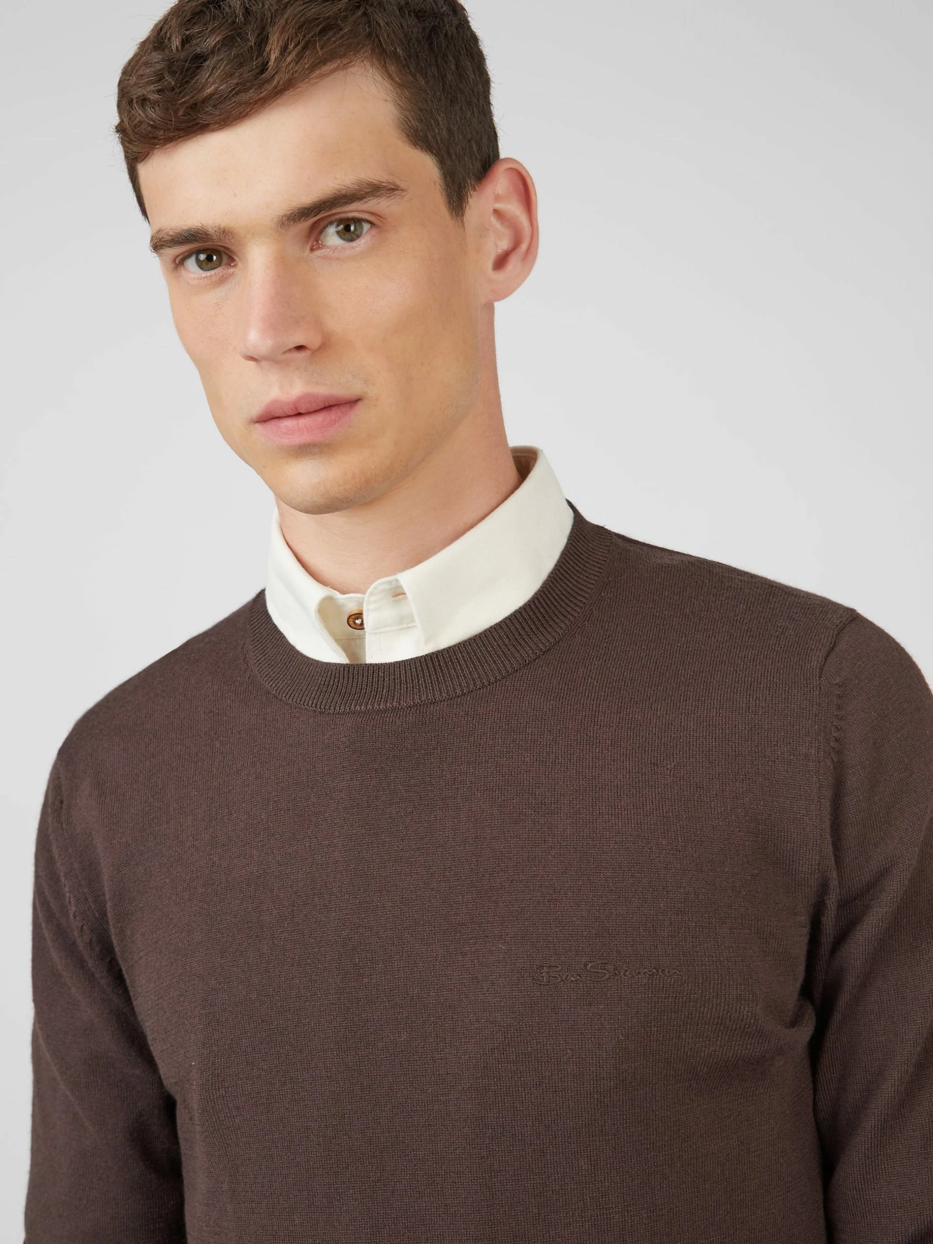 Our signature knitted crew neck jumper in a merino wool blend and a regular fit, a staple piece for the Autumn/Winter season. Features include a tonal “Ben Sherman” chest embroidery.