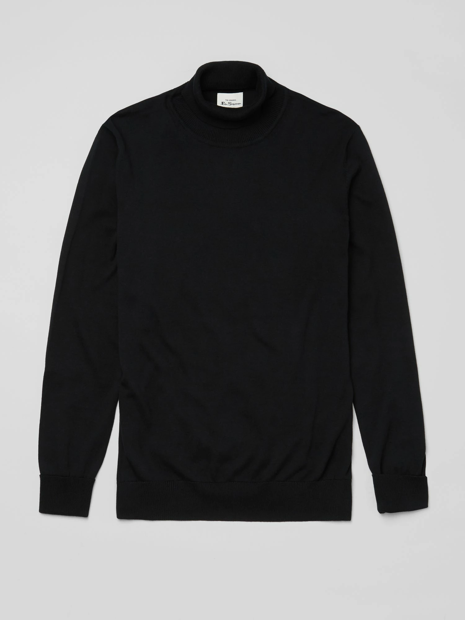 Our signature knitted roll-neck jumper is constructed from organic cotton and regular cotton, and a comes in a regular fit. This sweater is branded with the Ben Sherman side-tab label.