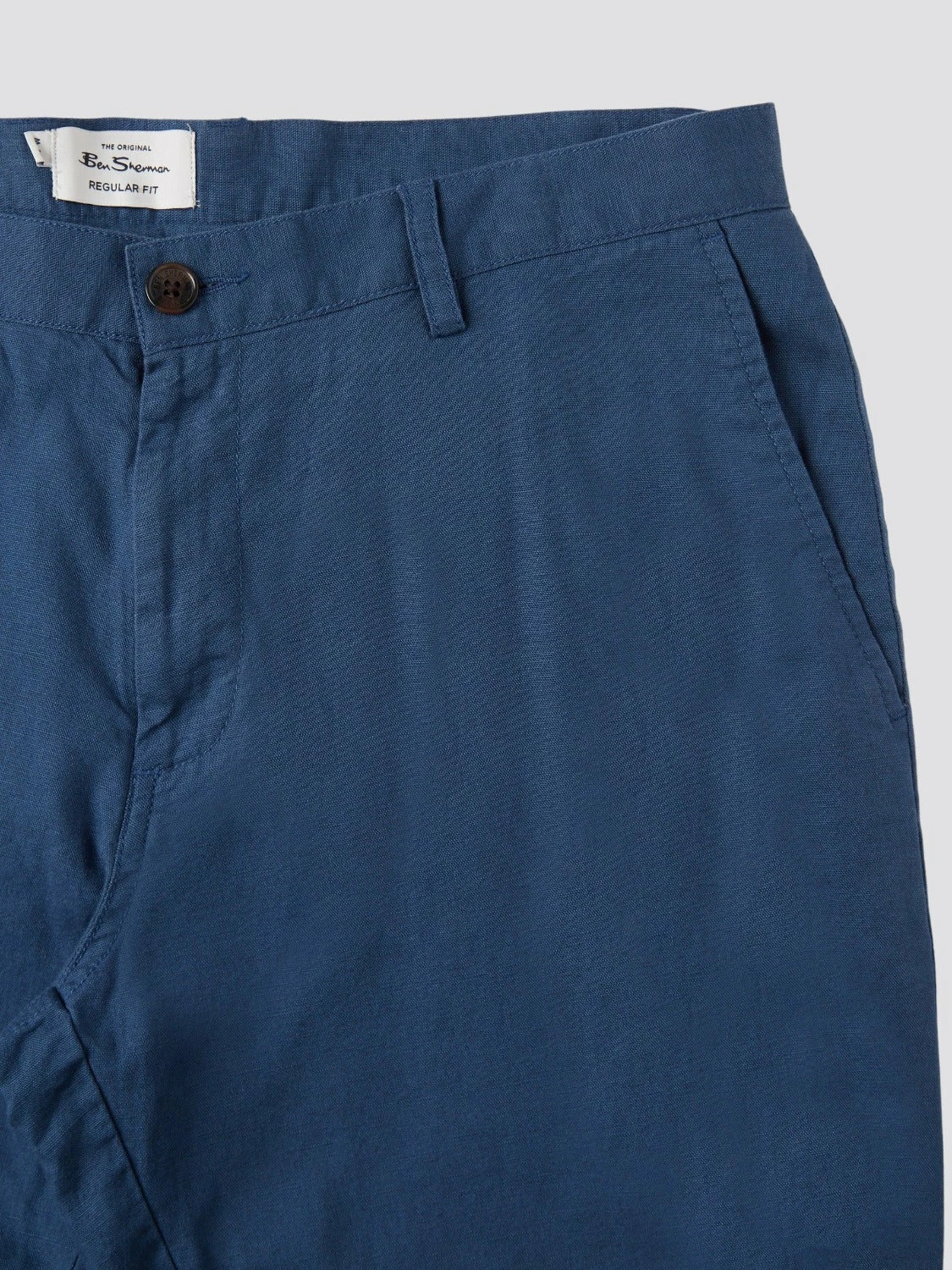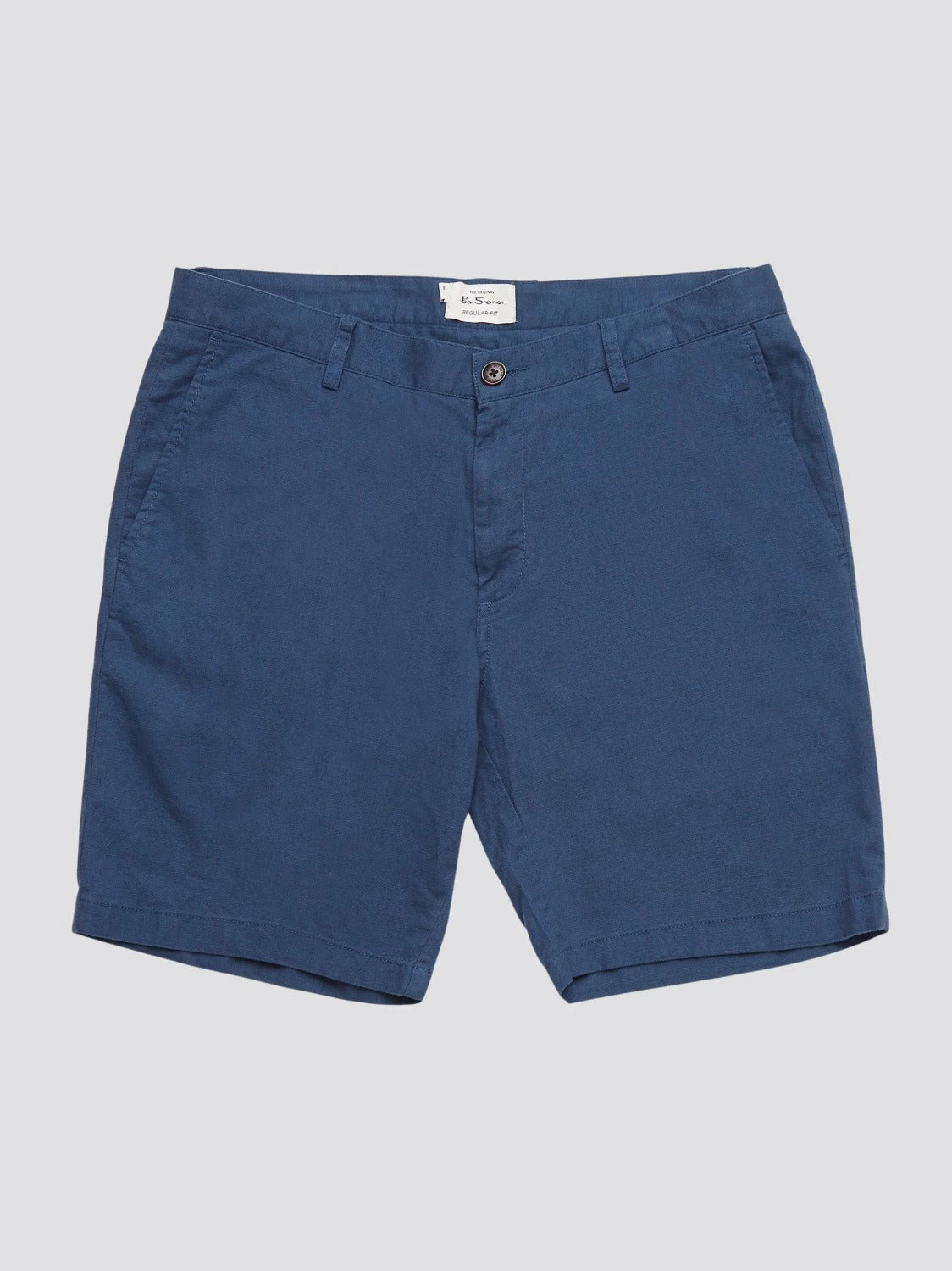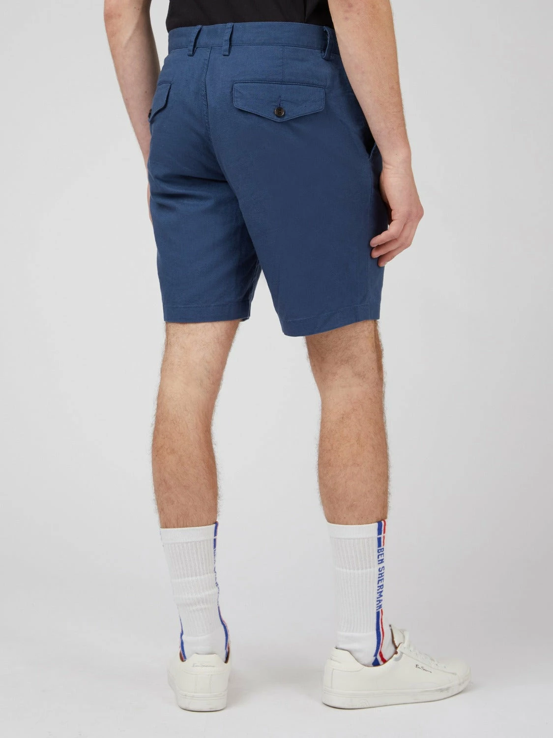 This cotton/linen short in a regular fit. Features include a contrast waistband binding, Ben Sherman badge, 2 front slanted pockets and button through flap pockets at the back.