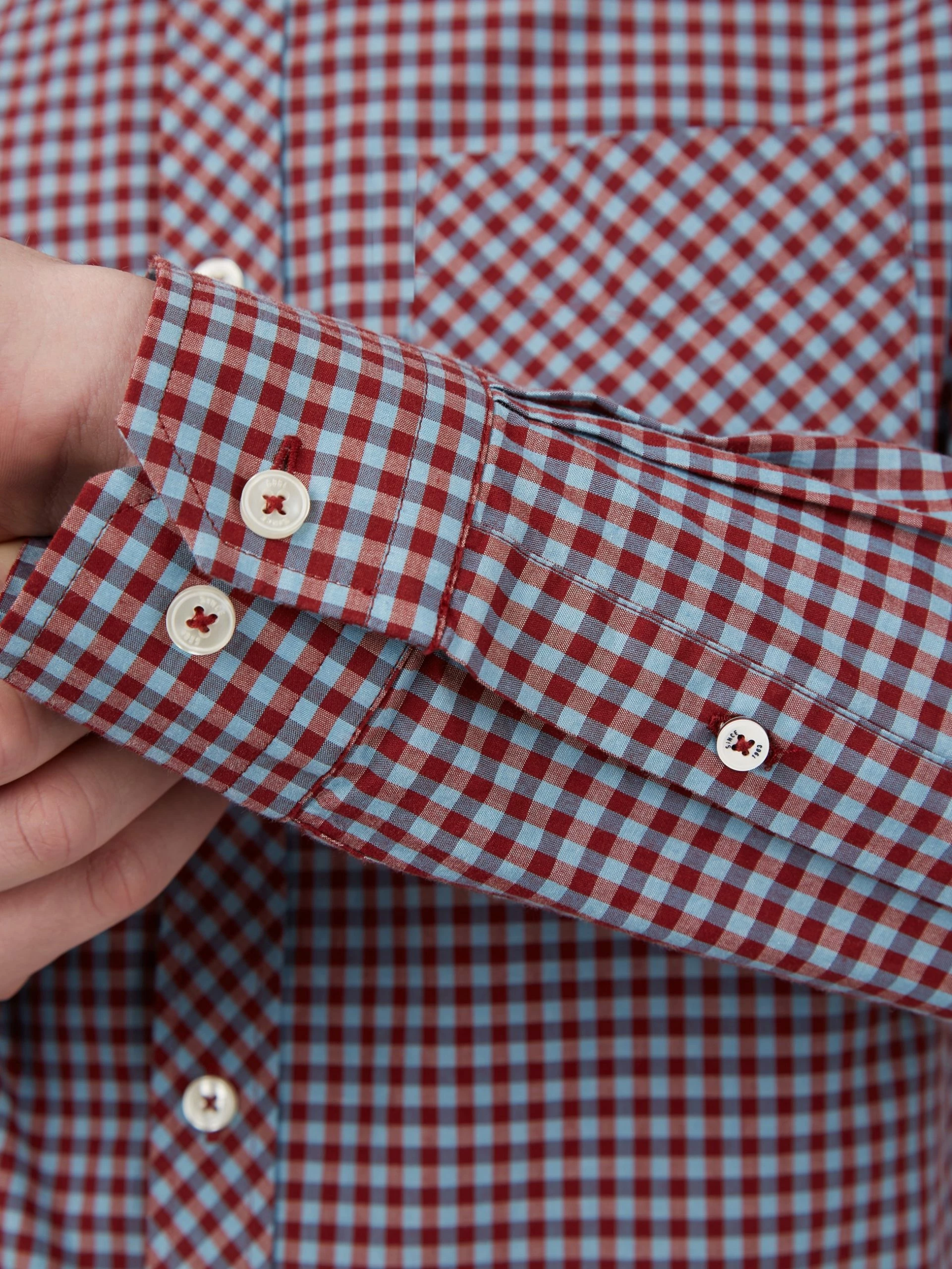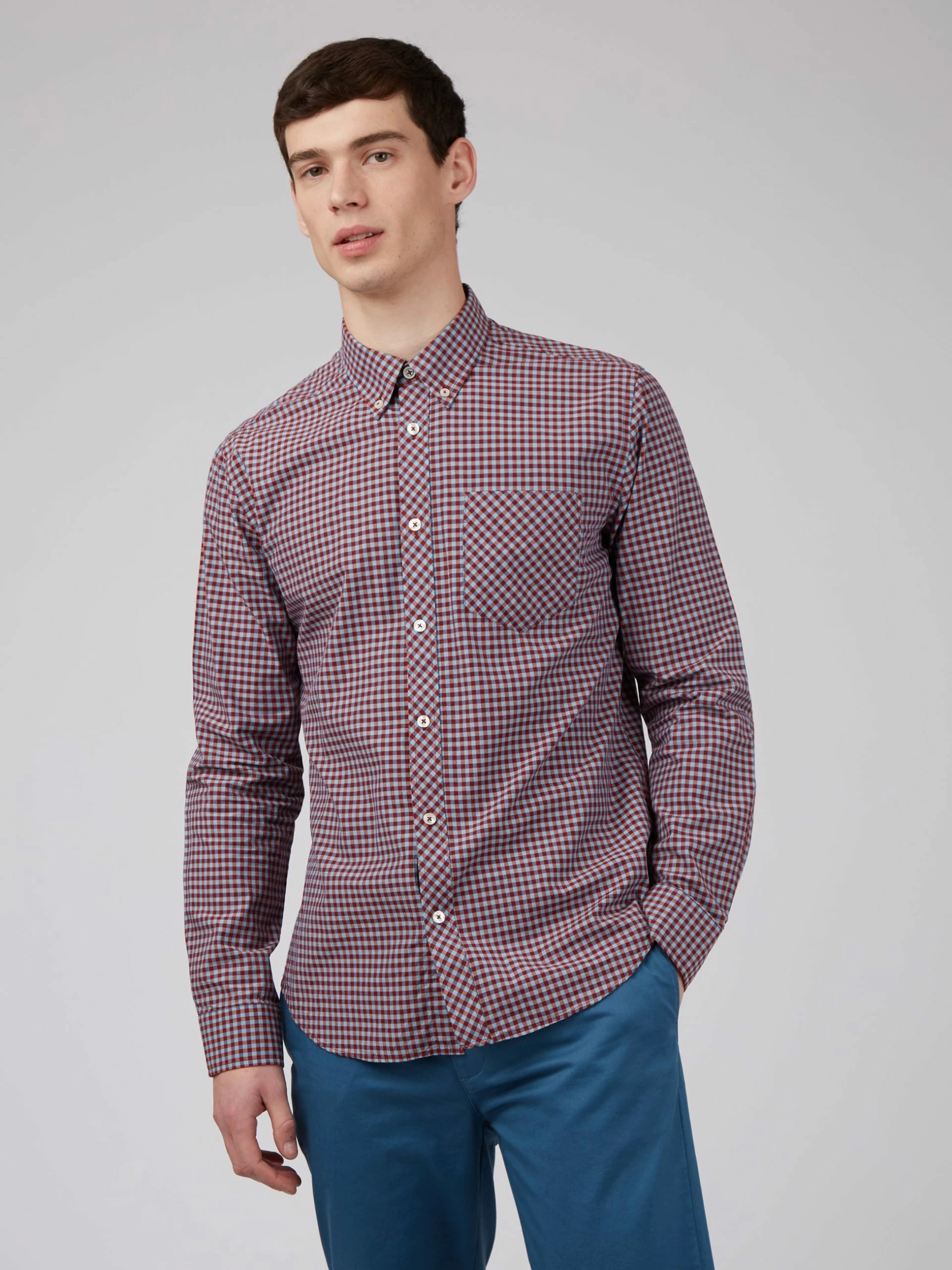 A long sleeve shirt in our iconic gingham with classic Ben Sherman features of a two finger button down collar and tab branding, great for smart casual wear. Our regular fit style is finished with a back box pleat for comfort.