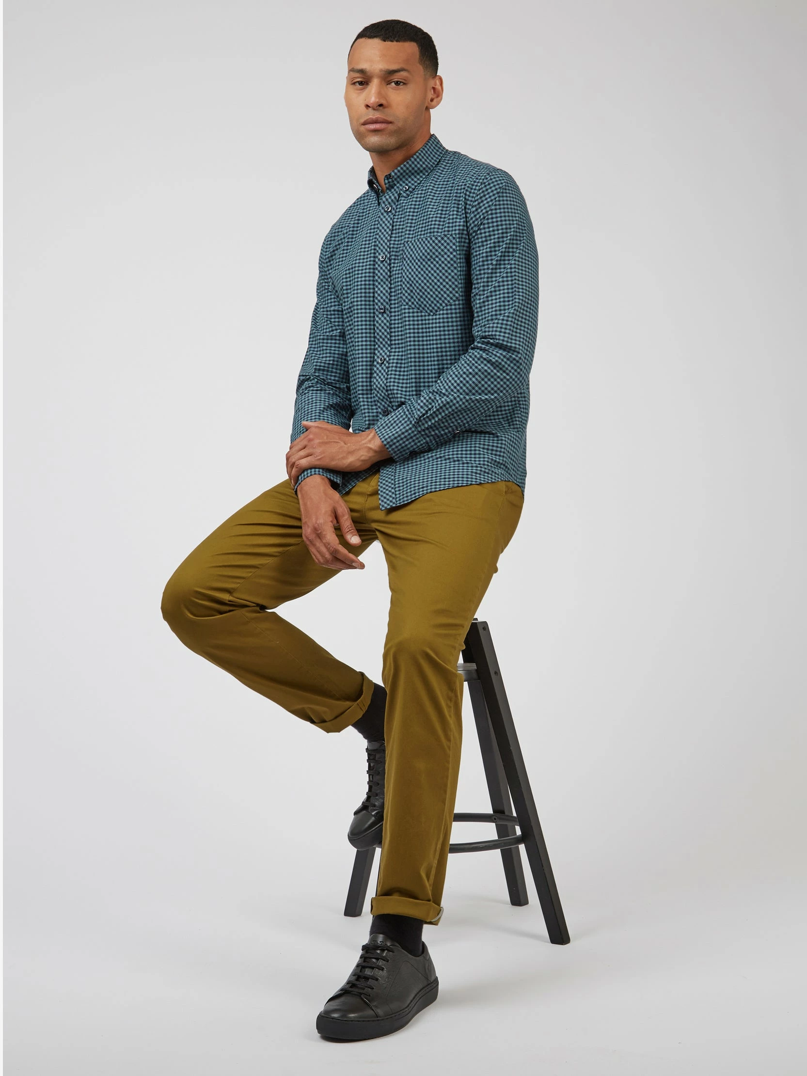 A long sleeve shirt in our iconic gingham with classic Ben Sherman features of a two finger button down collar and tab branding, great for smart casual wear. Our regular fit style is finished with a back box pleat for comfort.