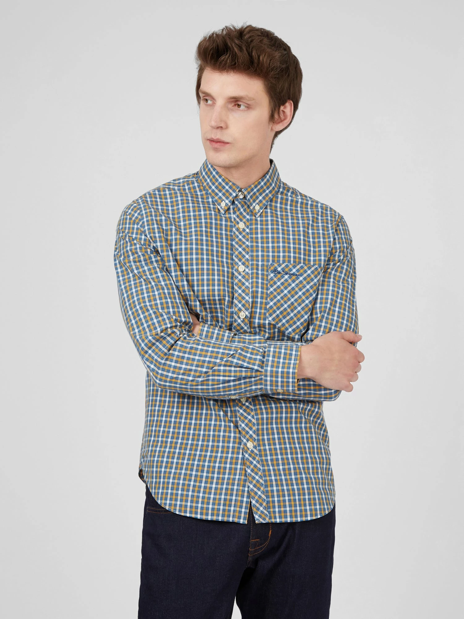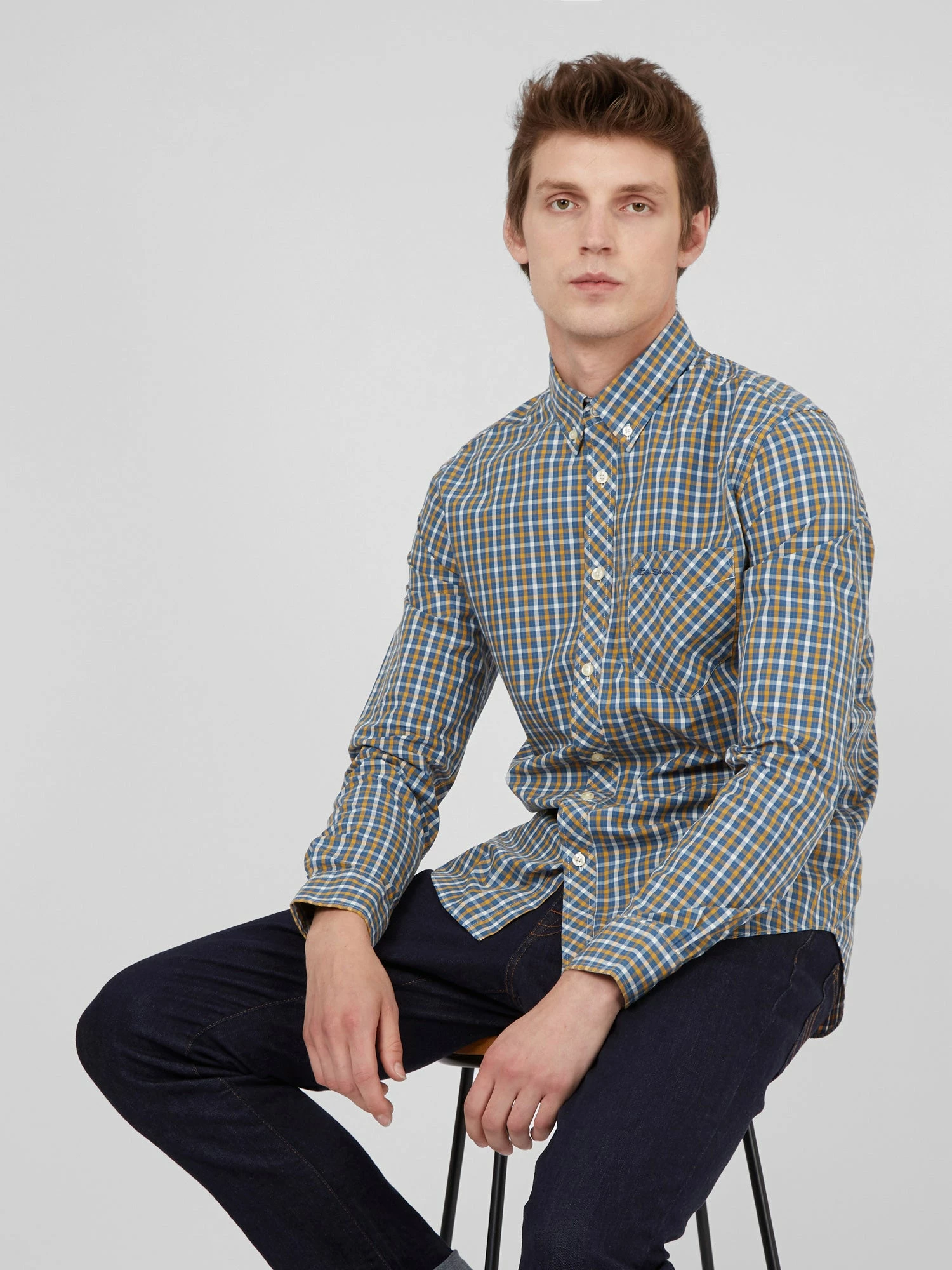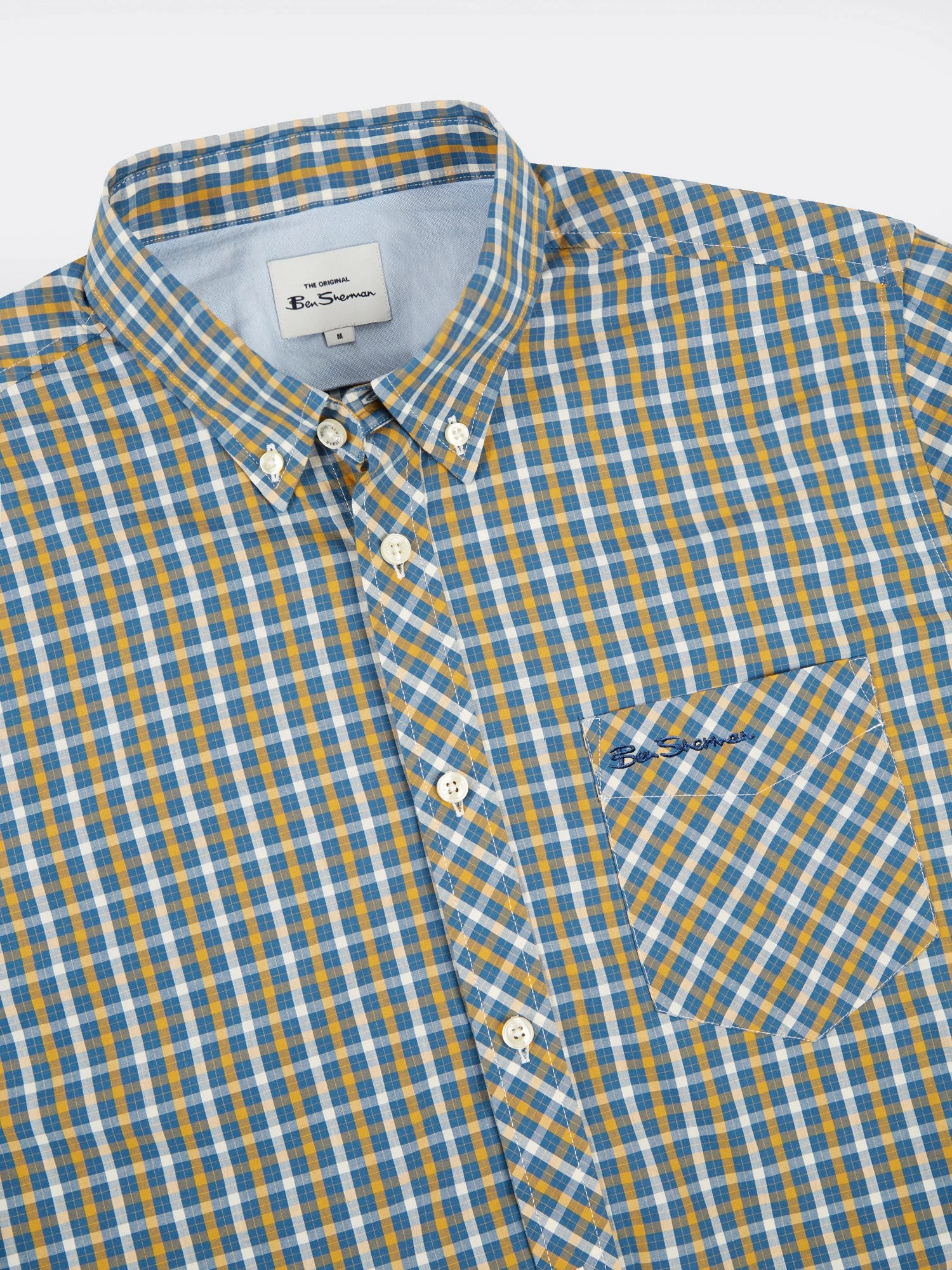 From our core collection, our original check shirt is a modern classic. Cut from a lightweight checkered fabric, this shirt is styled with a two-finger, button-down collar and tab branding.