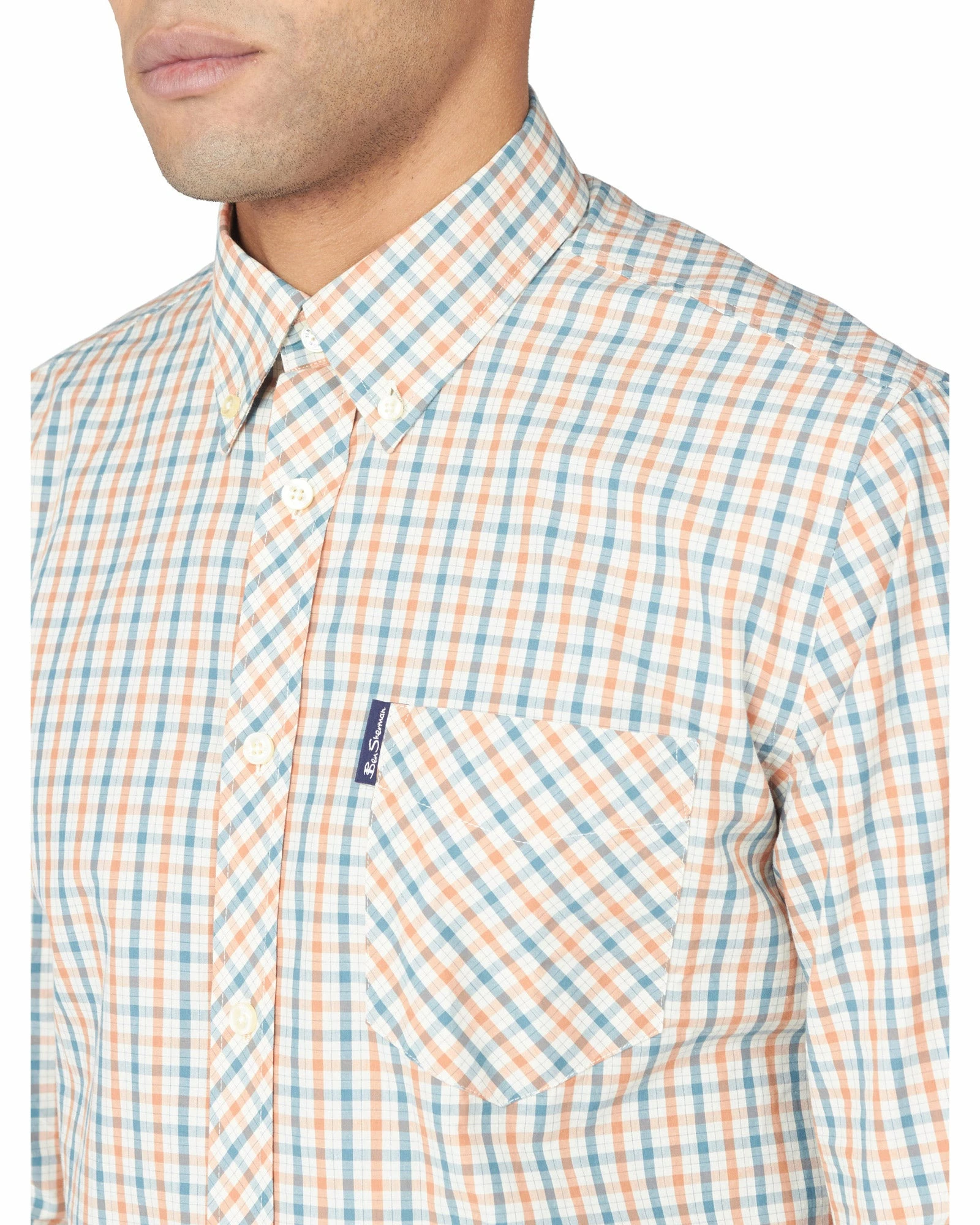 From our core collection, our original check shirt is a modern classic. Cut from a lightweight checkered fabric, this shirt is styled with a two-finger, button-down collar and tab branding.