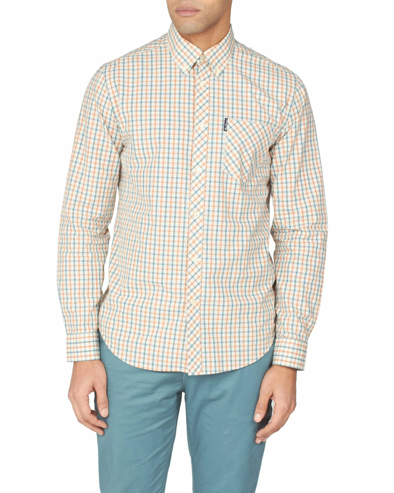 - Check button-down shirt