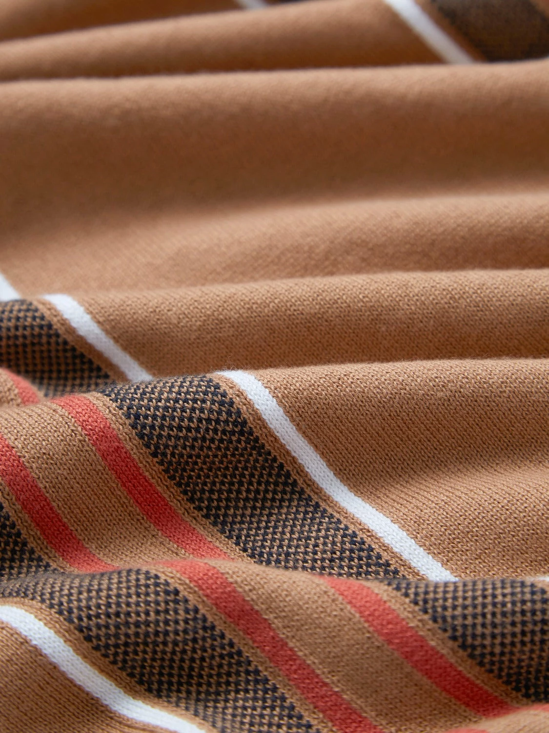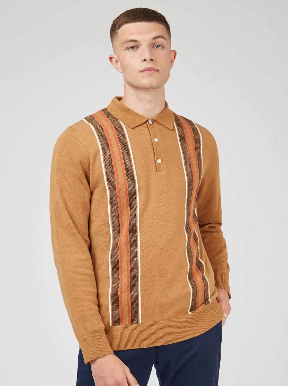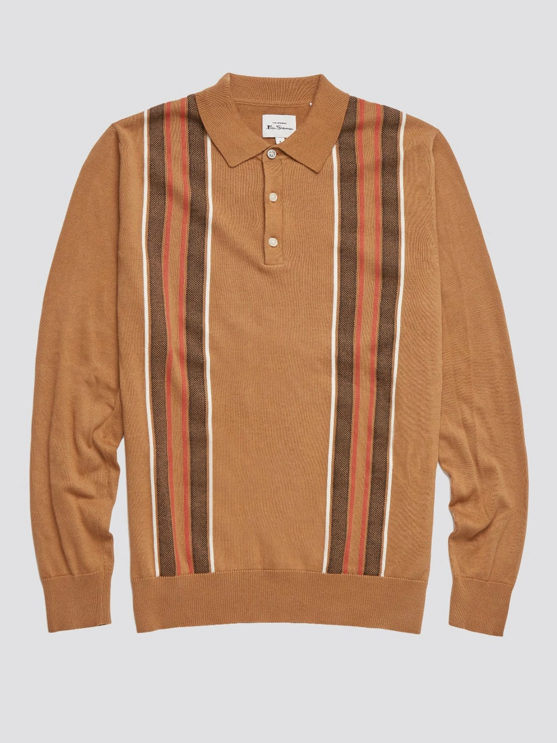 Our signature Ben Sherman mod stripe knitted polo in 100% cotton. Designed in a long sleeve with a vertical stripe to the front in a birdseye texture. Branded with the signature Ben Sherman woven side tab.
