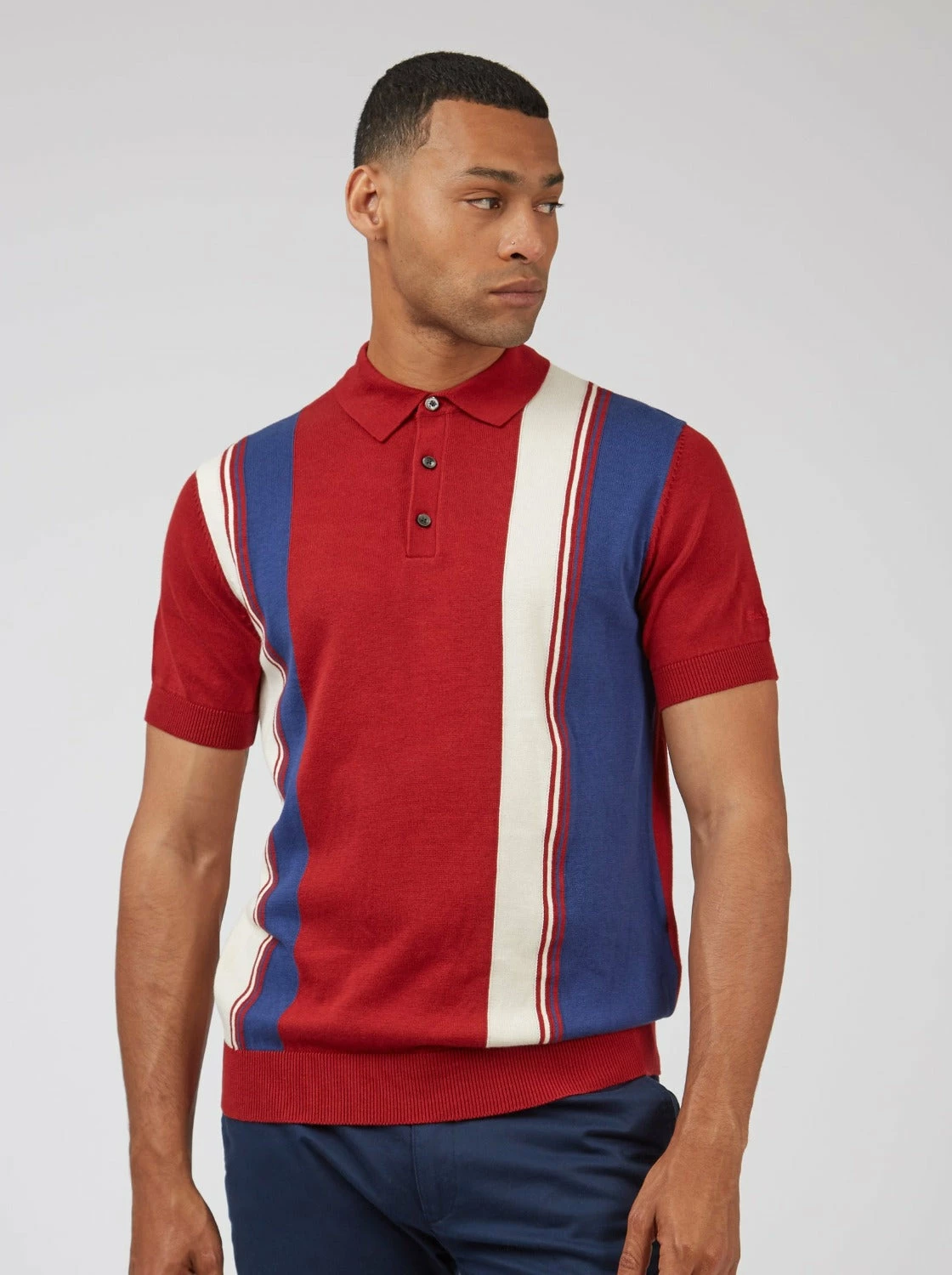 Our signature Ben Sherman mod stripe knitted polo in 100% cotton. Designed with a vertical mod stripe to the front and branded with a tonal signature “Ben Sherman” sleeve embroidery.