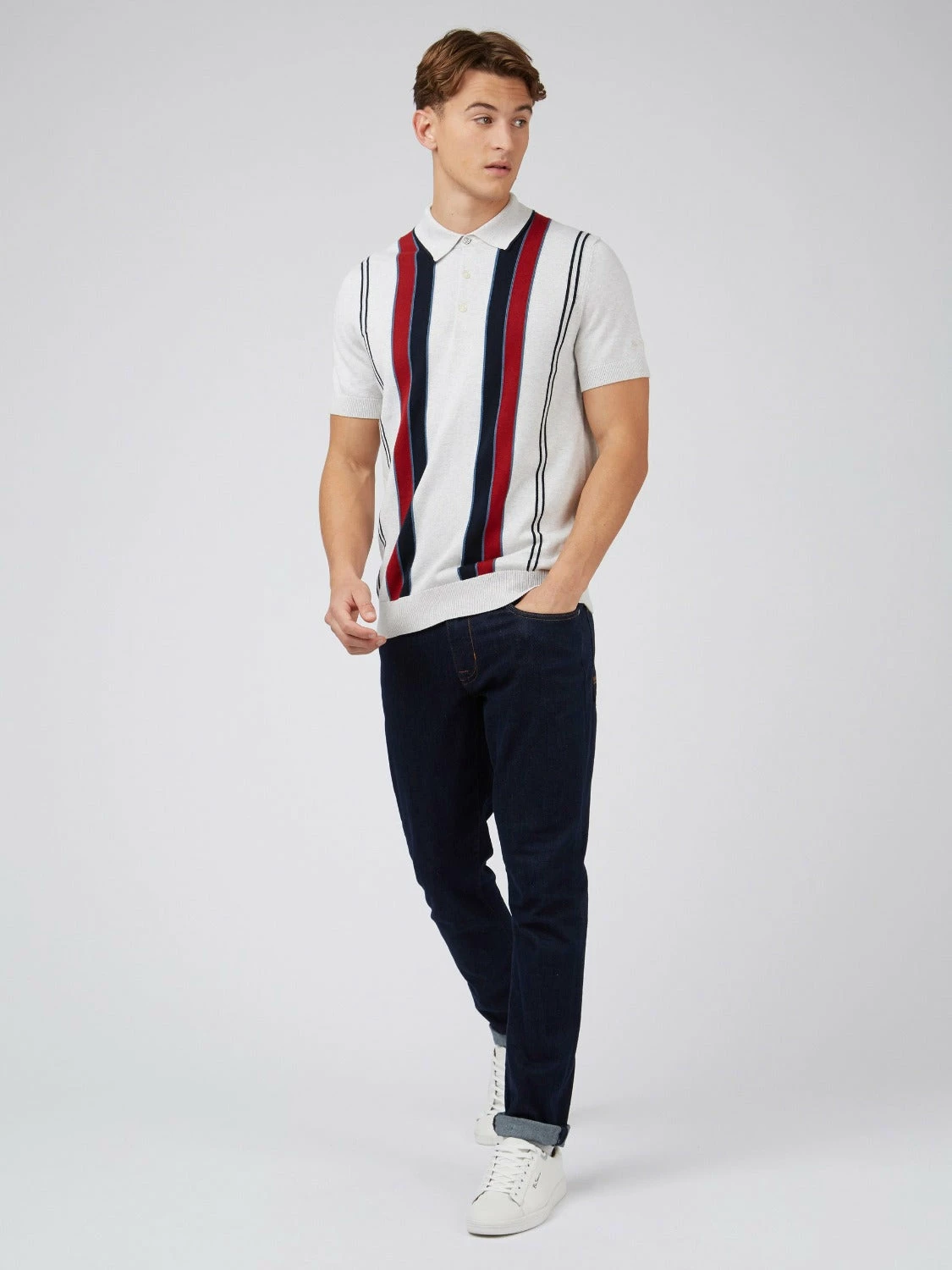 Looking for the perfect springtime wardrobe staple? Look no further than our knit polos. An update on our signature Ben Sherman mod stripe knitted polo in 100% cotton. Designed with a vertical mod stripe to the front and branded with a tonal signature “Ben Sherman” sleeve embroidery.