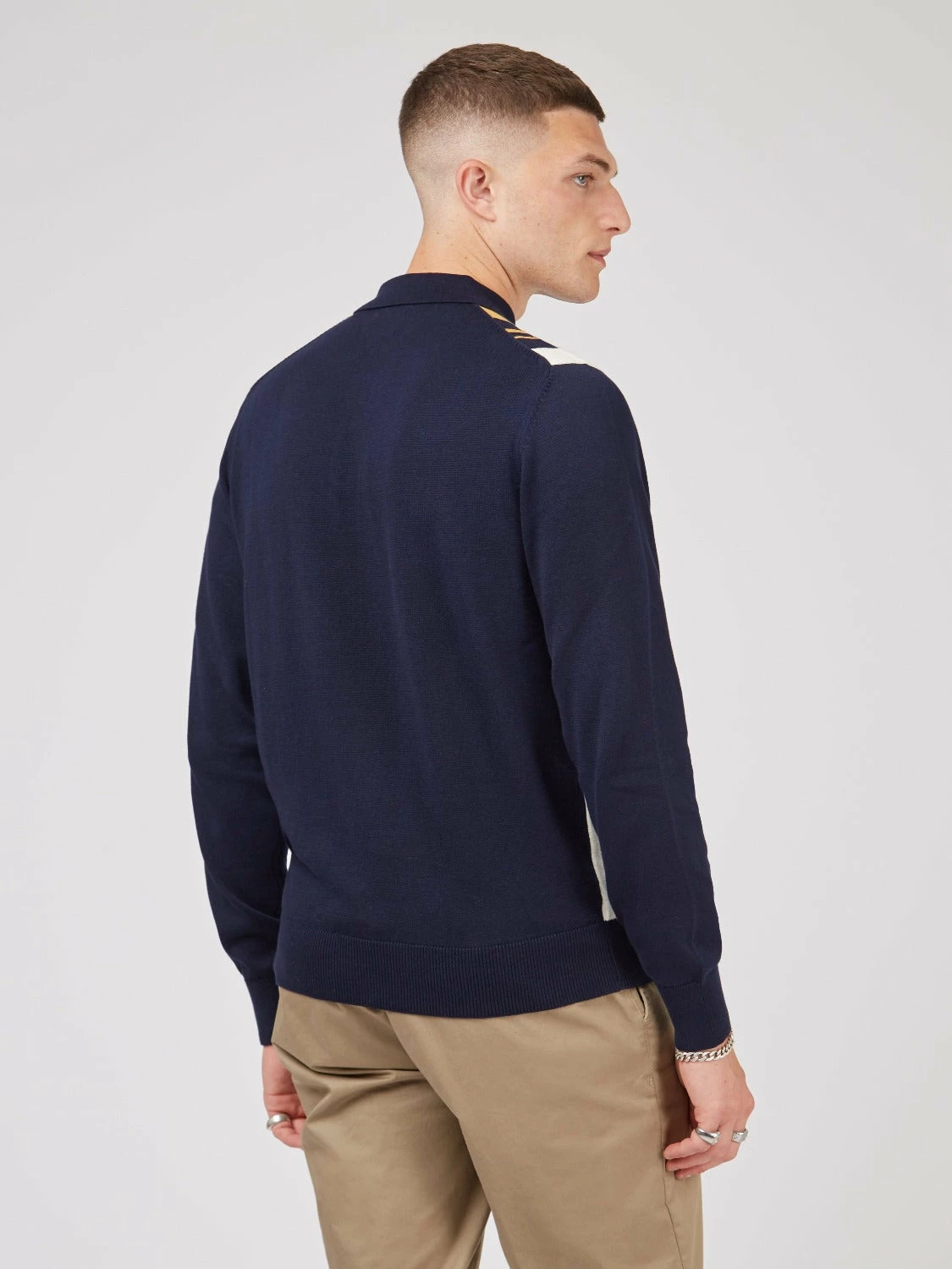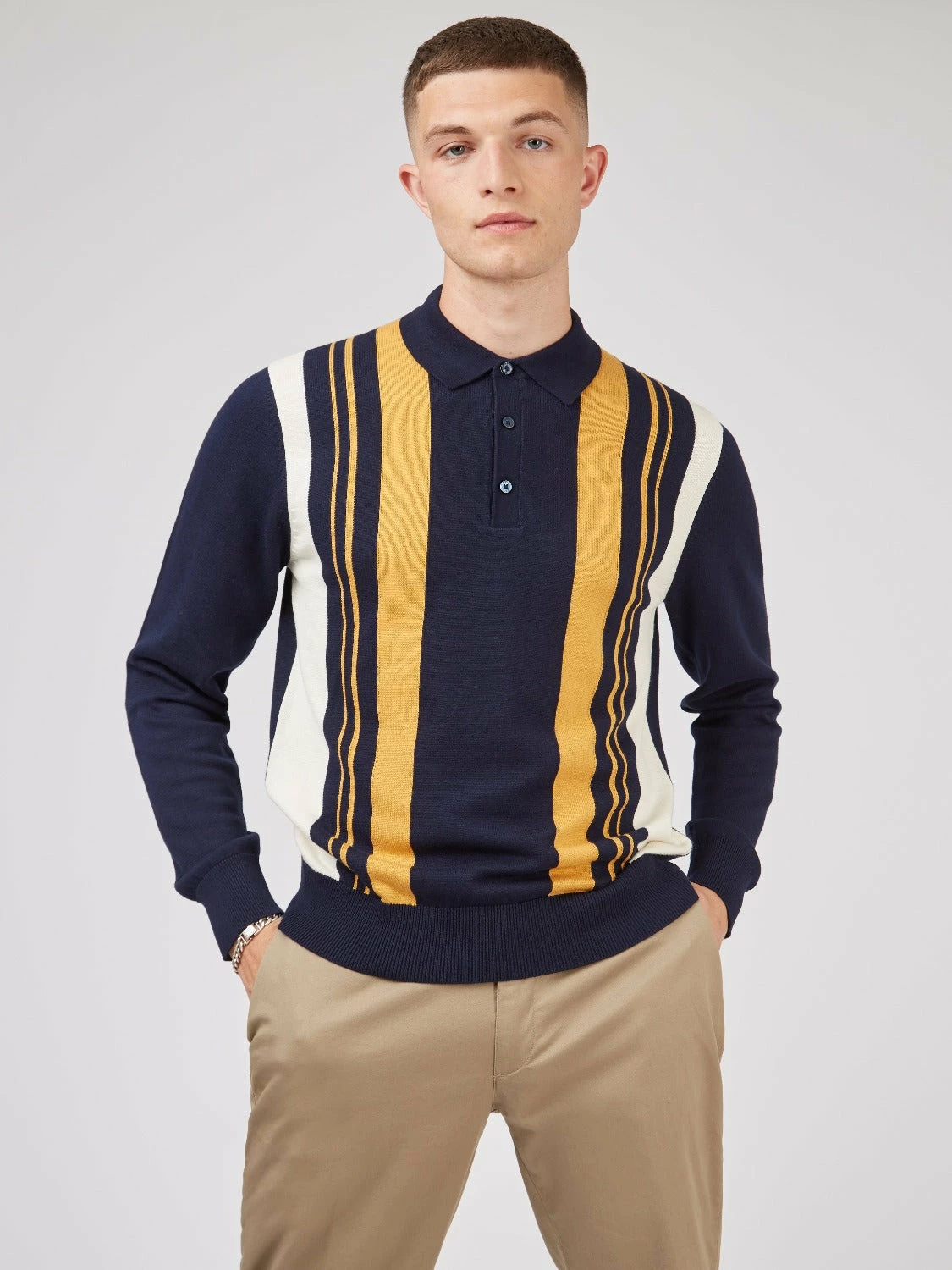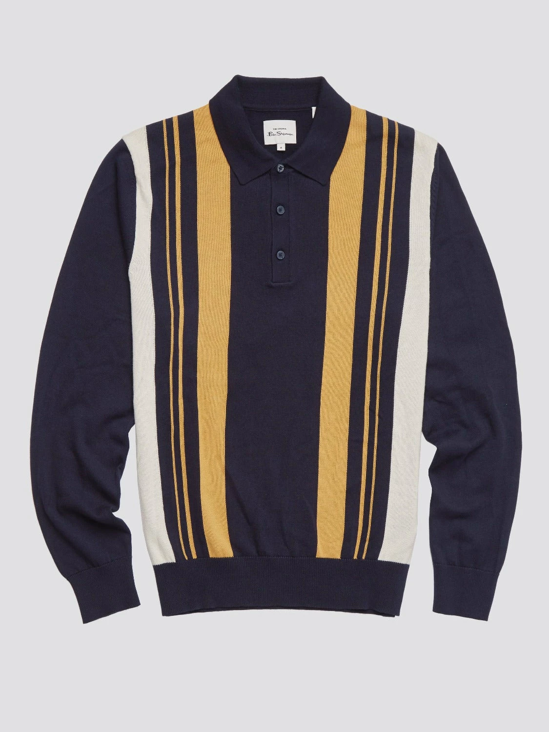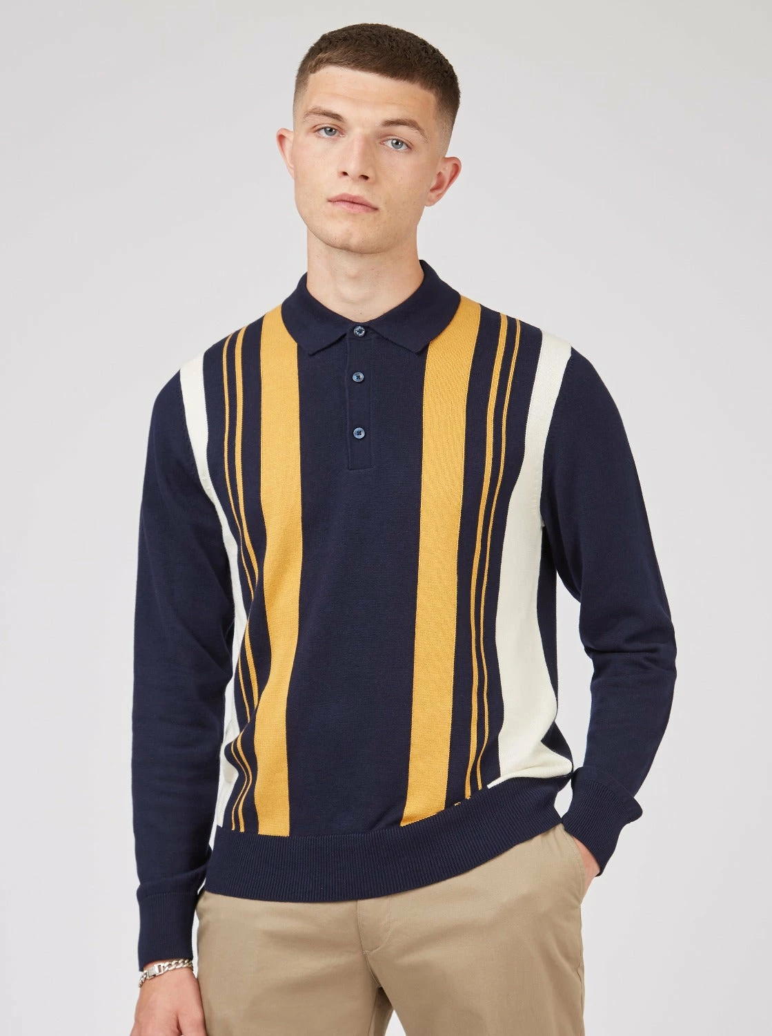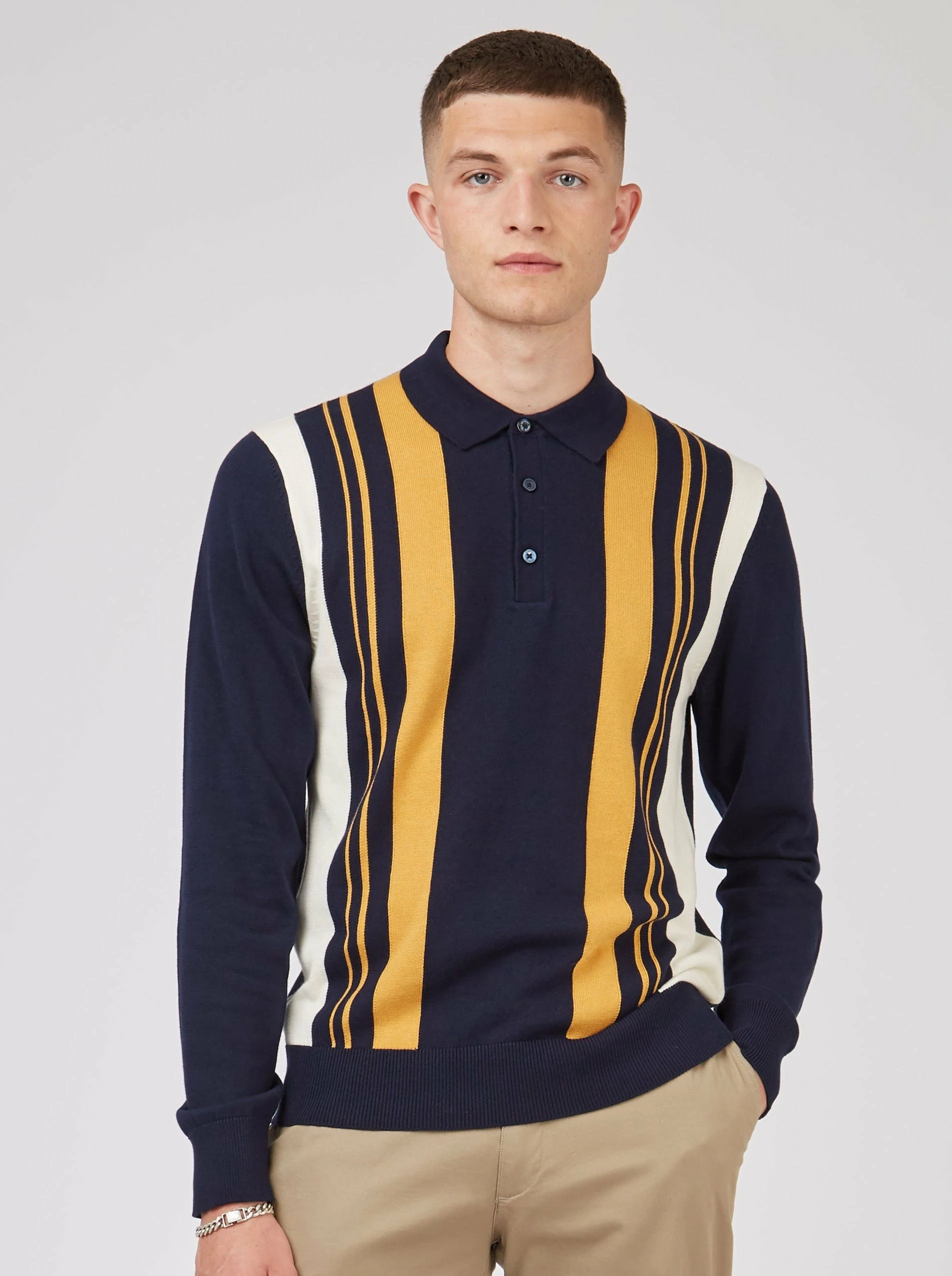 Our signature Ben Sherman mod stripe knitted polo in 100% cotton. Designed in a long sleeve with a vertical mod stripe to the front and branded with the signature Ben Sherman woven side tab.