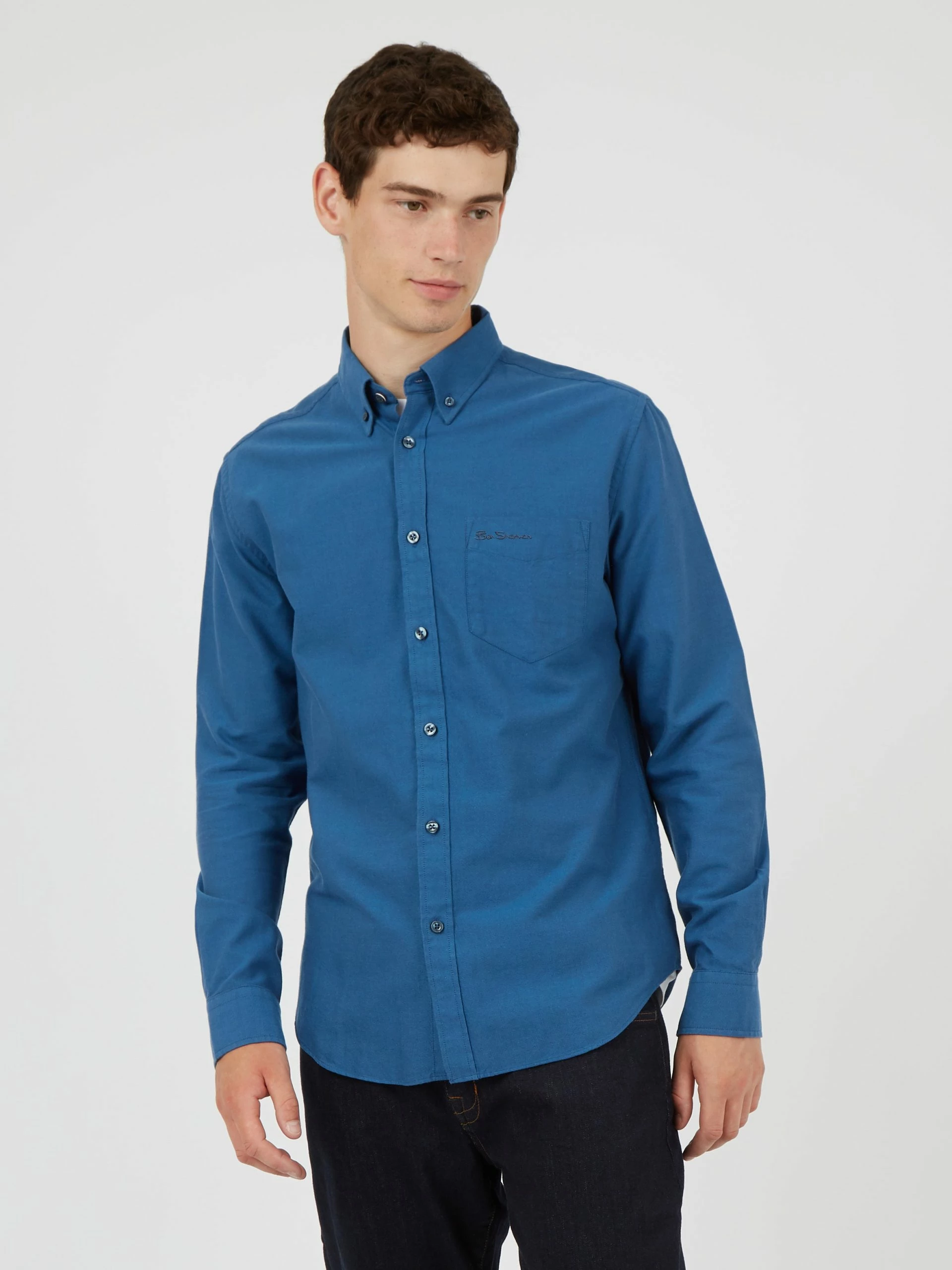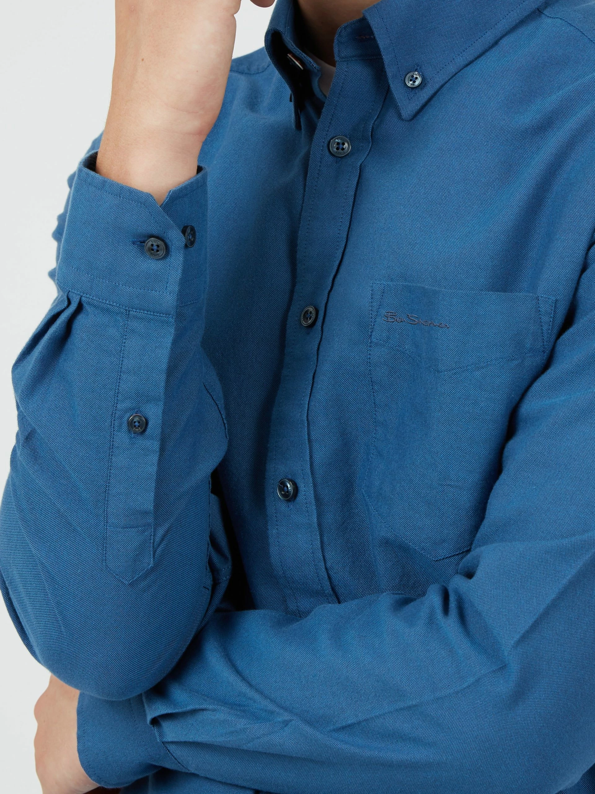 Our iconic long-sleeve oxford shirt is a wardrobe essential. Cut to our regular mod fit in a premium GOTS organic cotton, this stylish staple features a tab-branded chest pocket, a two-finger button-down collar, and a back box pleat.