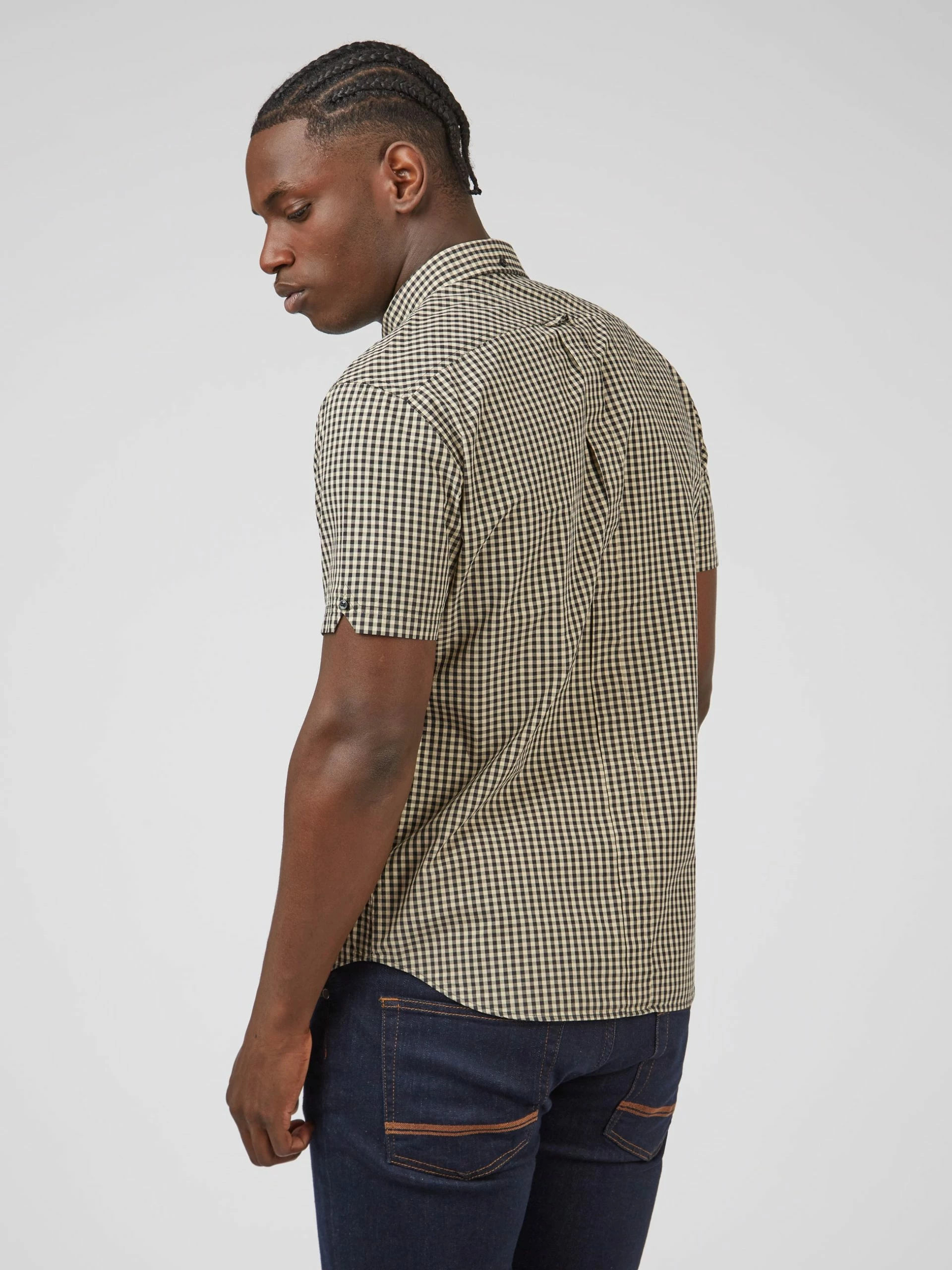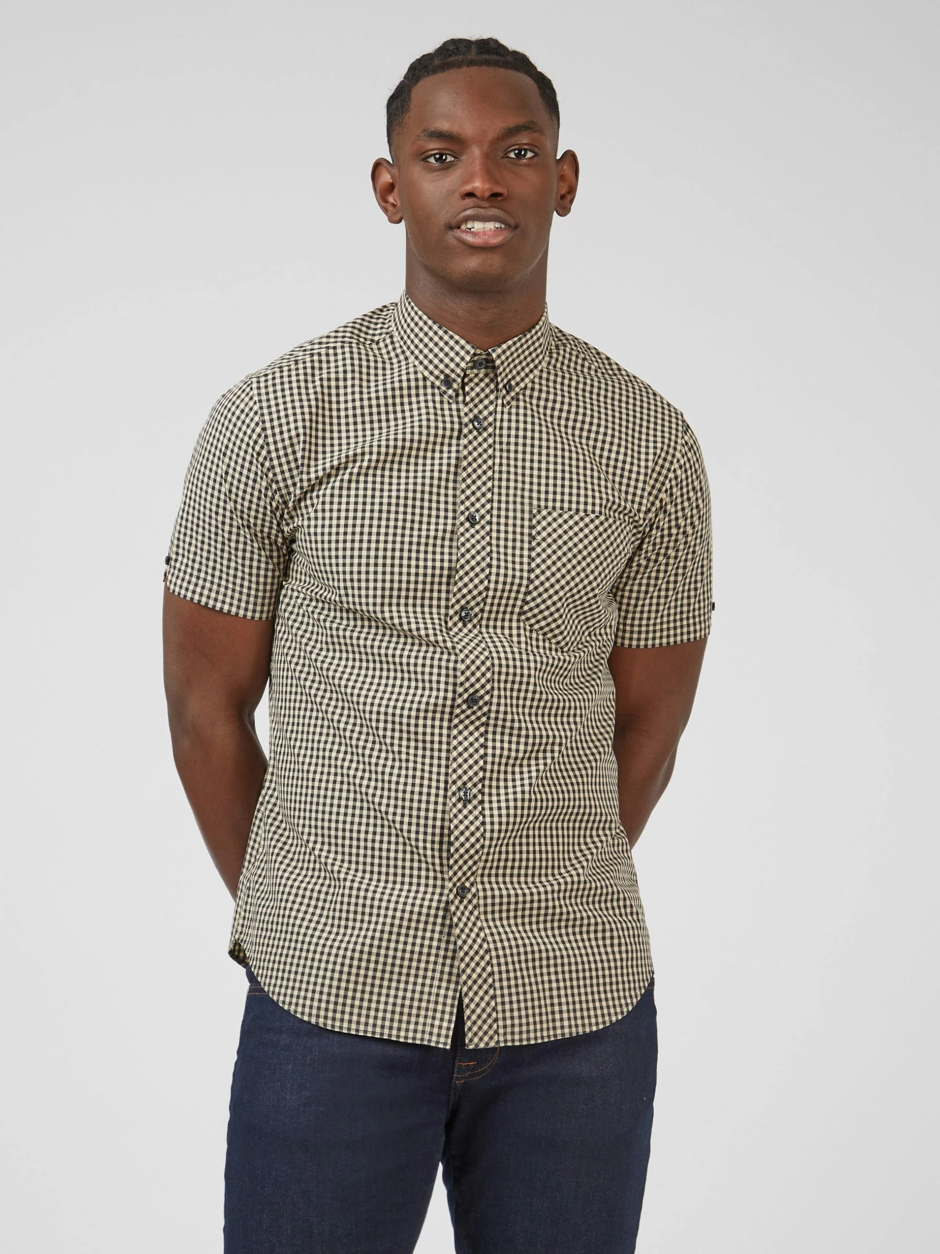 A short sleeve shirt in our iconic gingham with classic Ben Sherman features of a two finger button down collar and tab branding, great for smart casual wear. Our regular fit style is finished with a back box pleat for comfort.