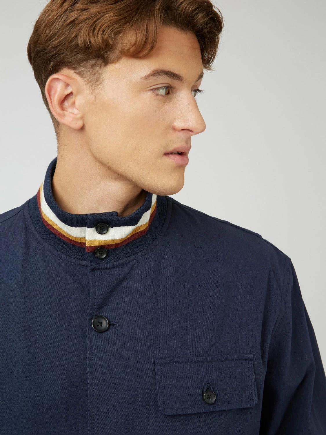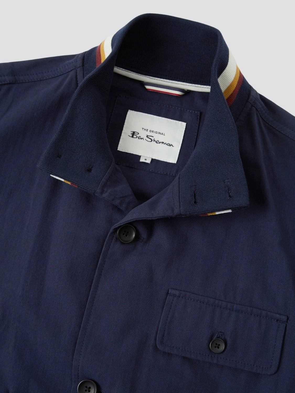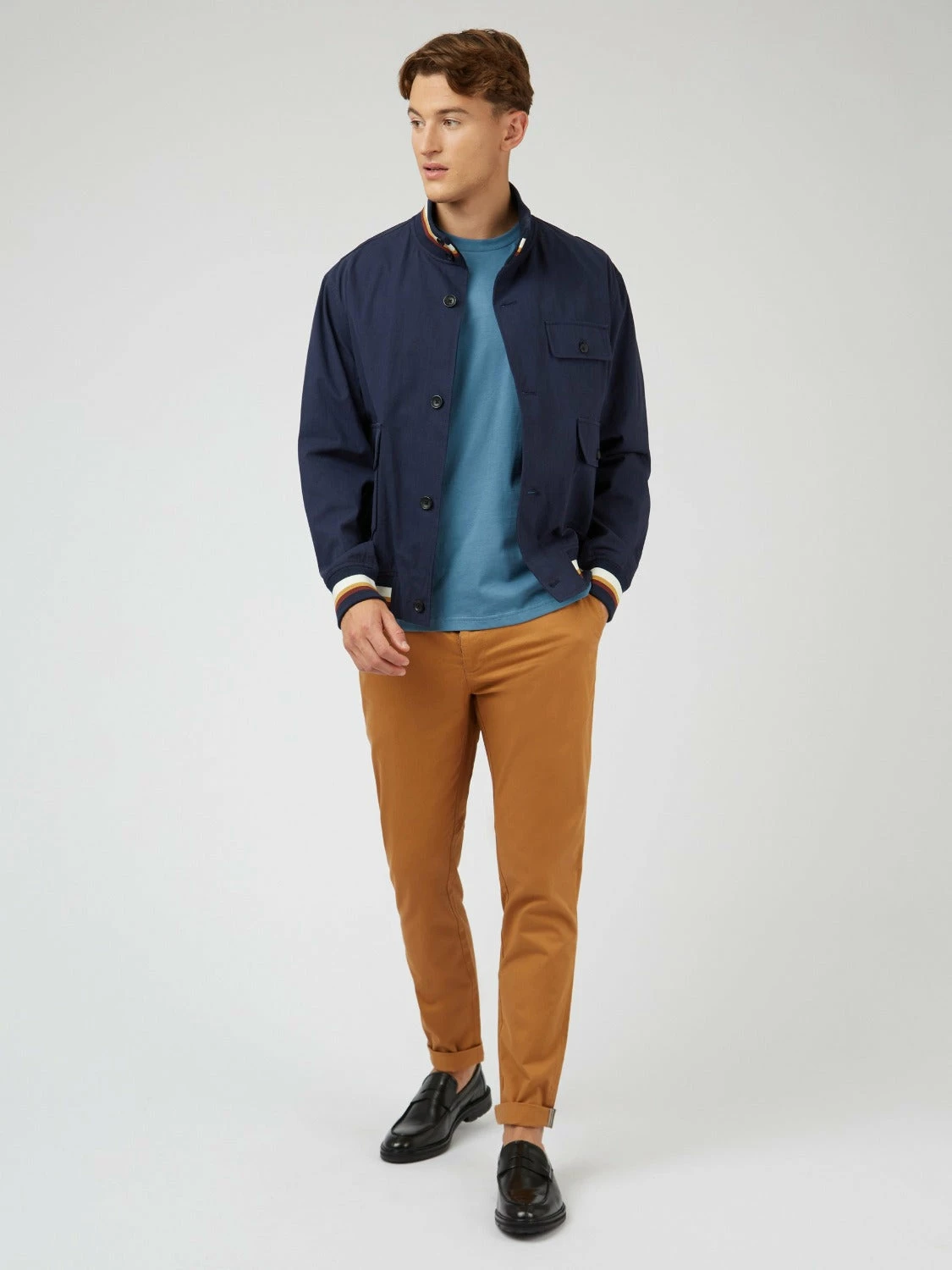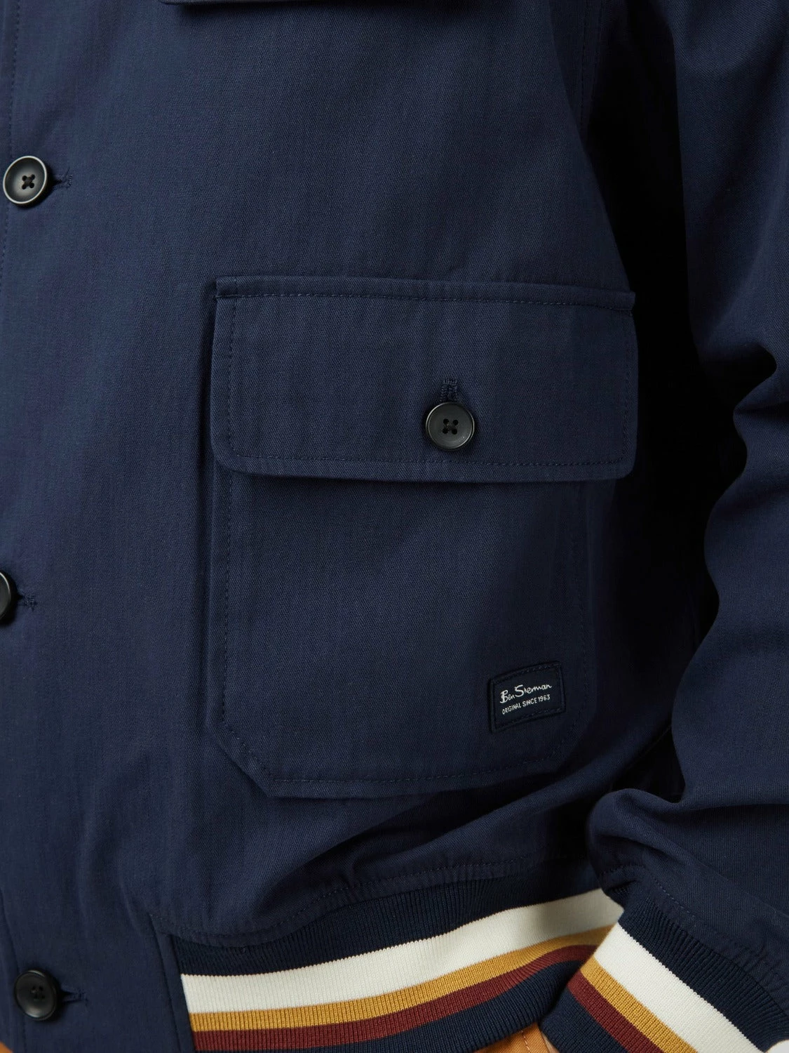 A classic bomber jacket in a cotton fabric. Features include a contrast rib at the neck, hem and cuff and a branded Ben Sherman badge. This piece has 3 external patch pockets and an internal pocket.