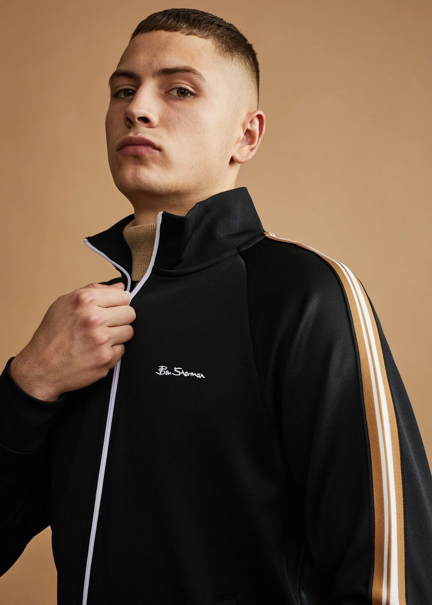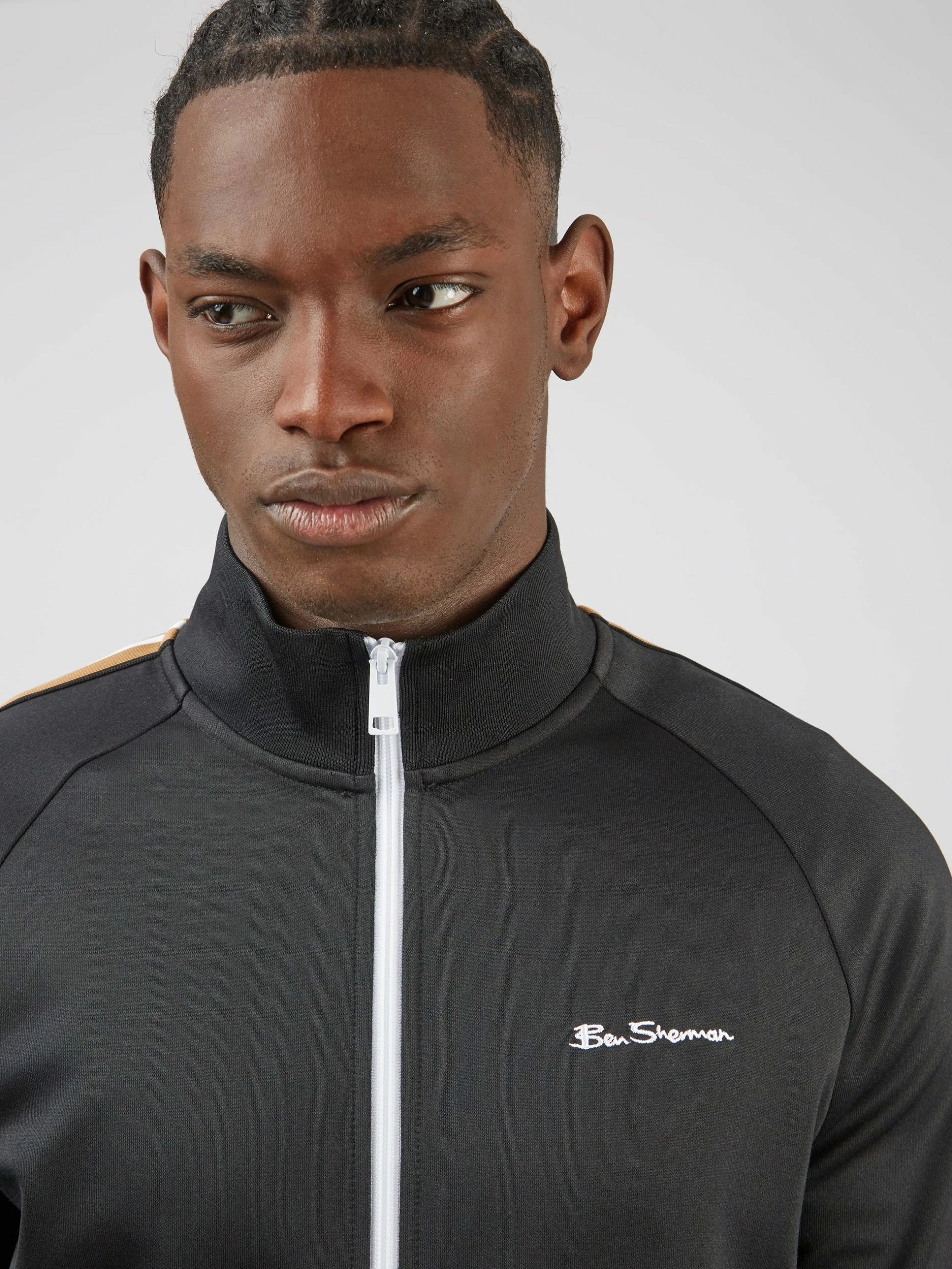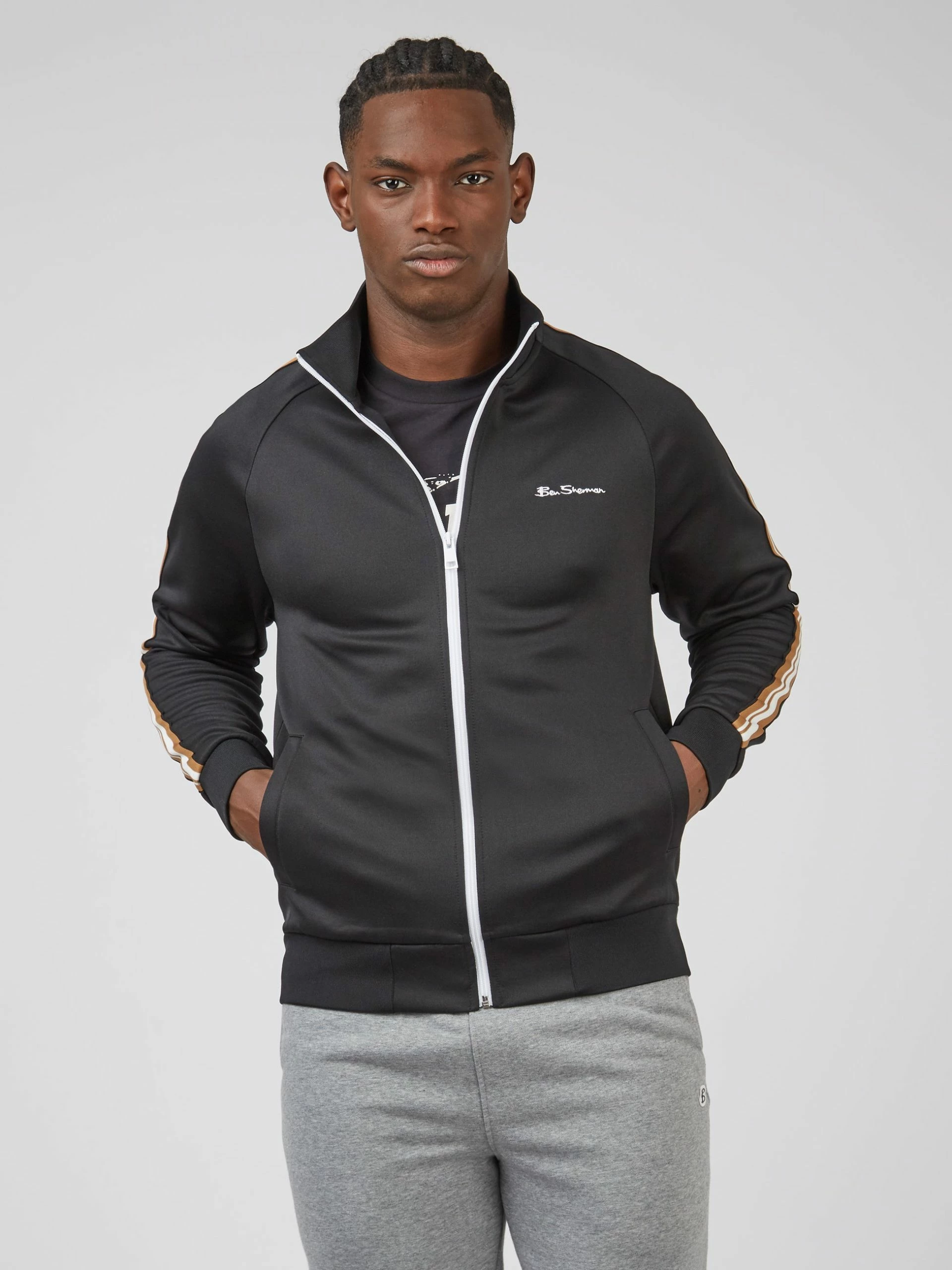 Our new signature track top available in 5 colours. This zip through track top is designed with our signature house tape down the sleeves and branded with a contrast “Ben Sherman” chest embroidery.
