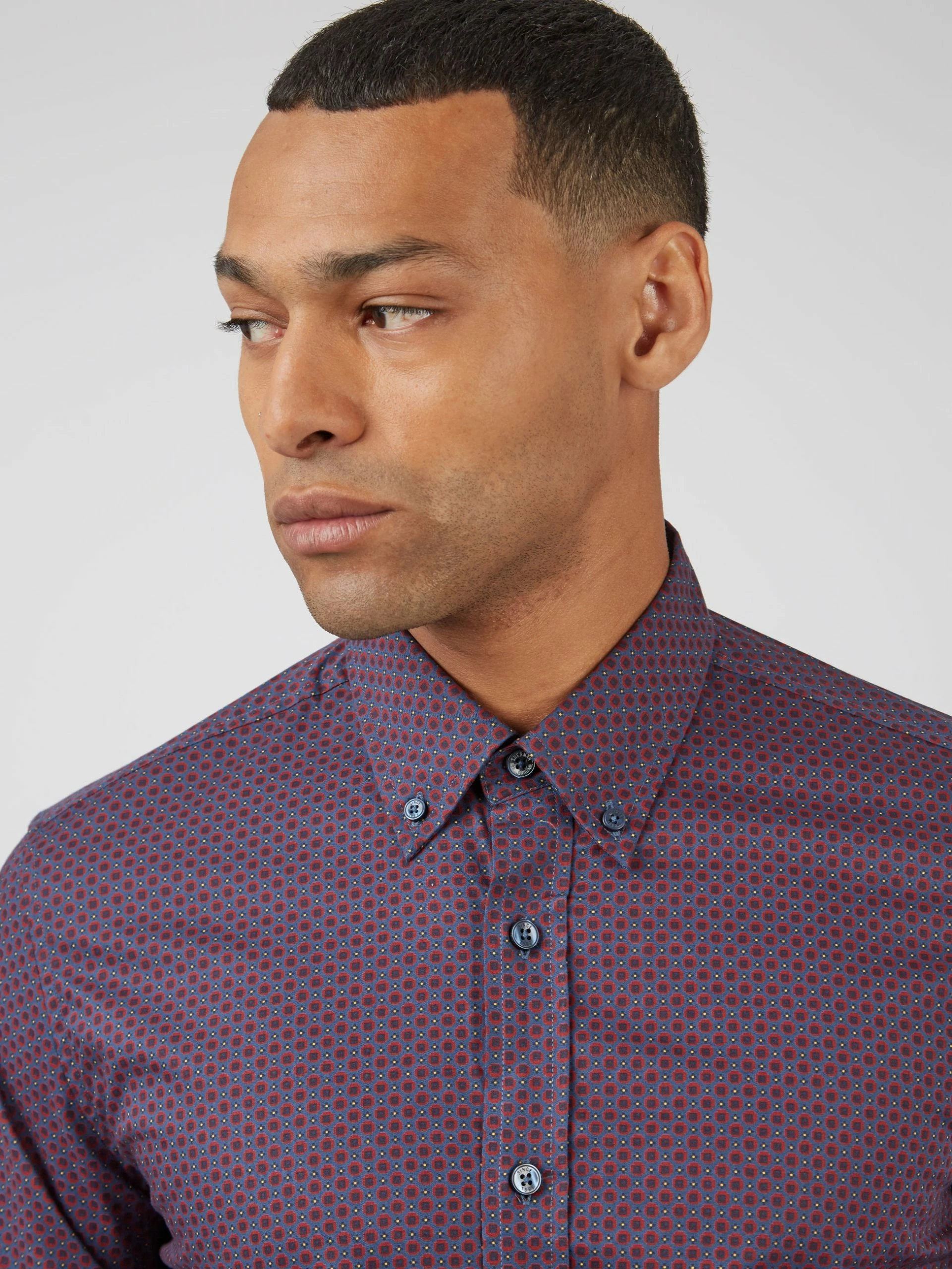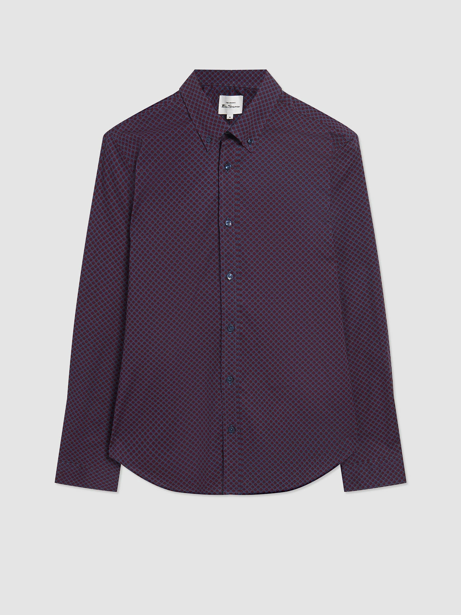 This Ben Sherman micro geo print long sleeve shirt comes in a slim fit and features a 2 finger button down collar. Made from 100% Cotton.