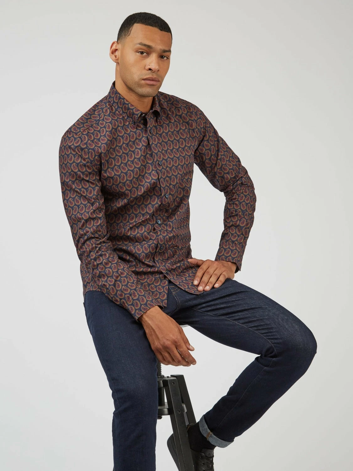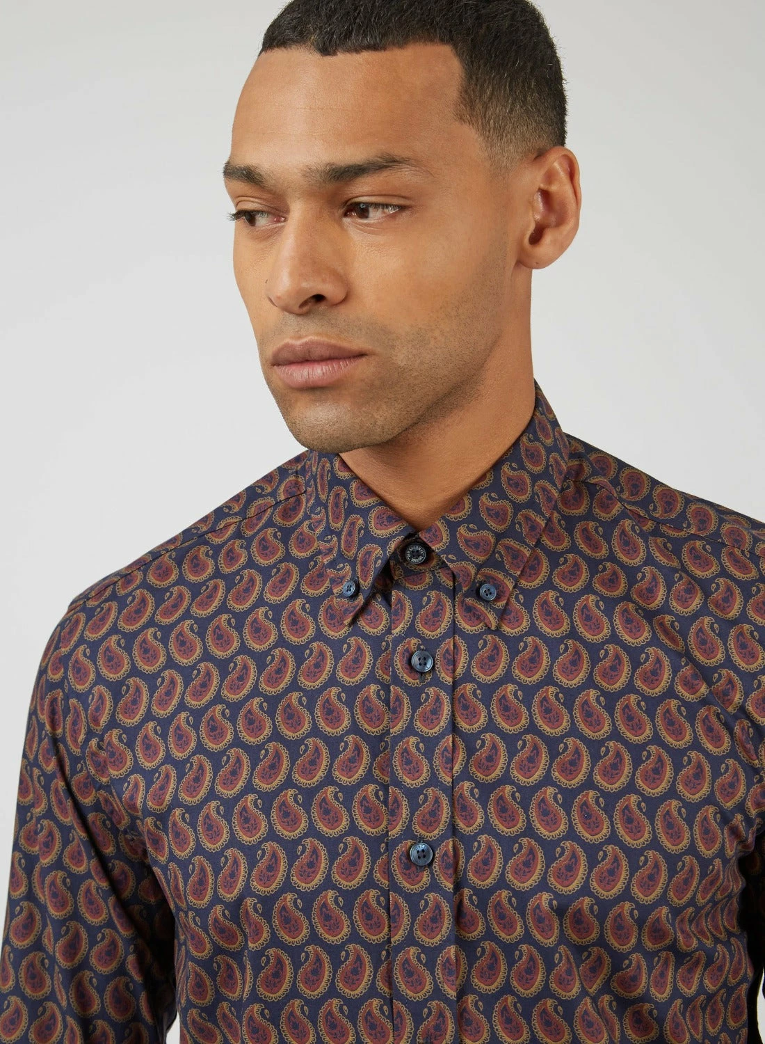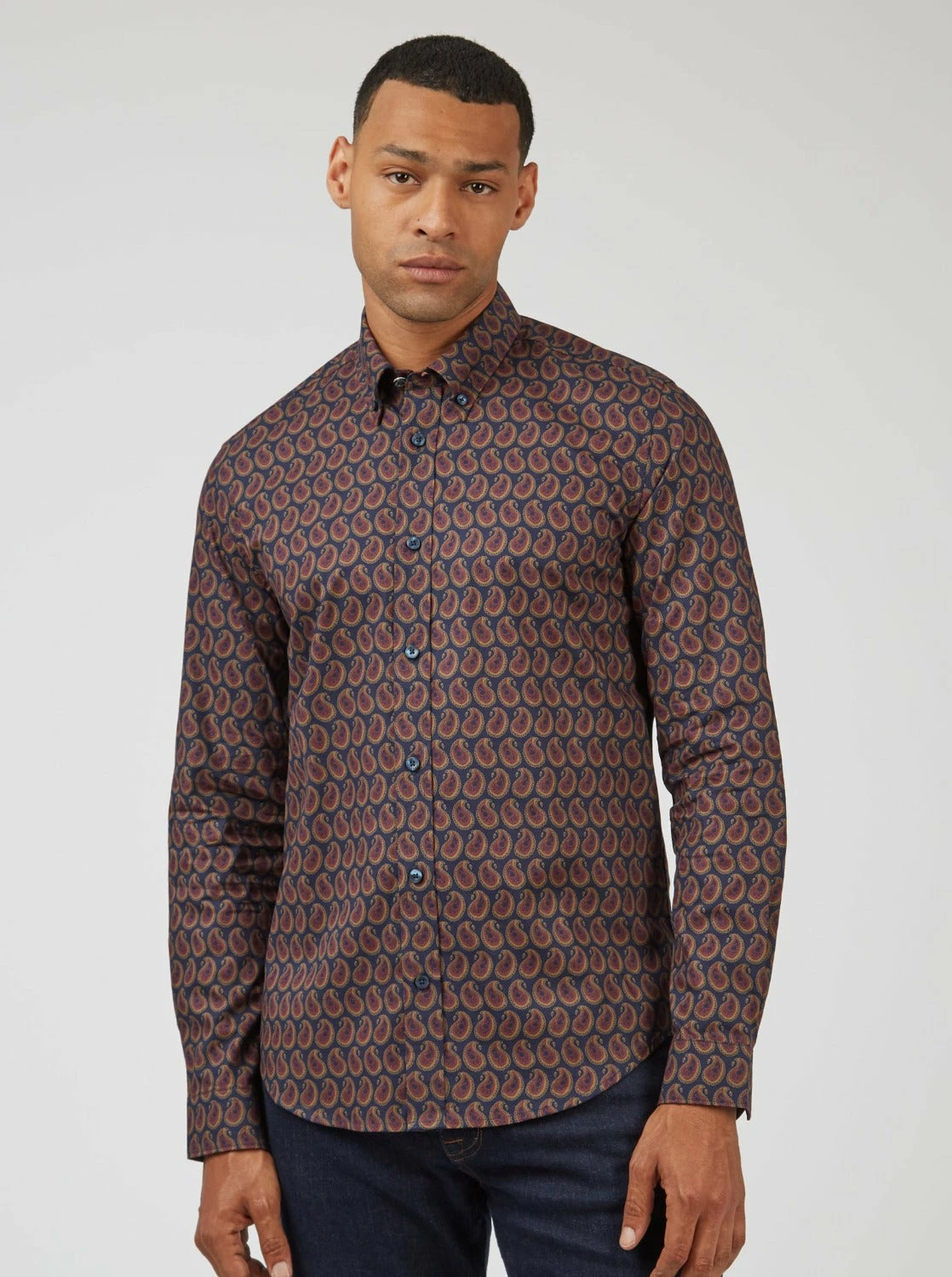 This Ben Sherman paisley print long sleeve shirt comes in a slim fit and features a 2 finger down collar. Made from 100% Cotton.
