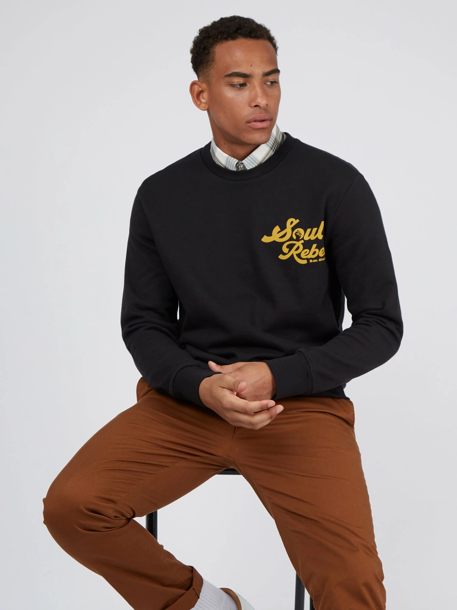 Our organic cotton crewneck sweatshirt is construction in a loopback organic cotton sweat fabric and features a “soul rebel”-inspired print on the chest. Ribbed hem and cuffs complete the look.