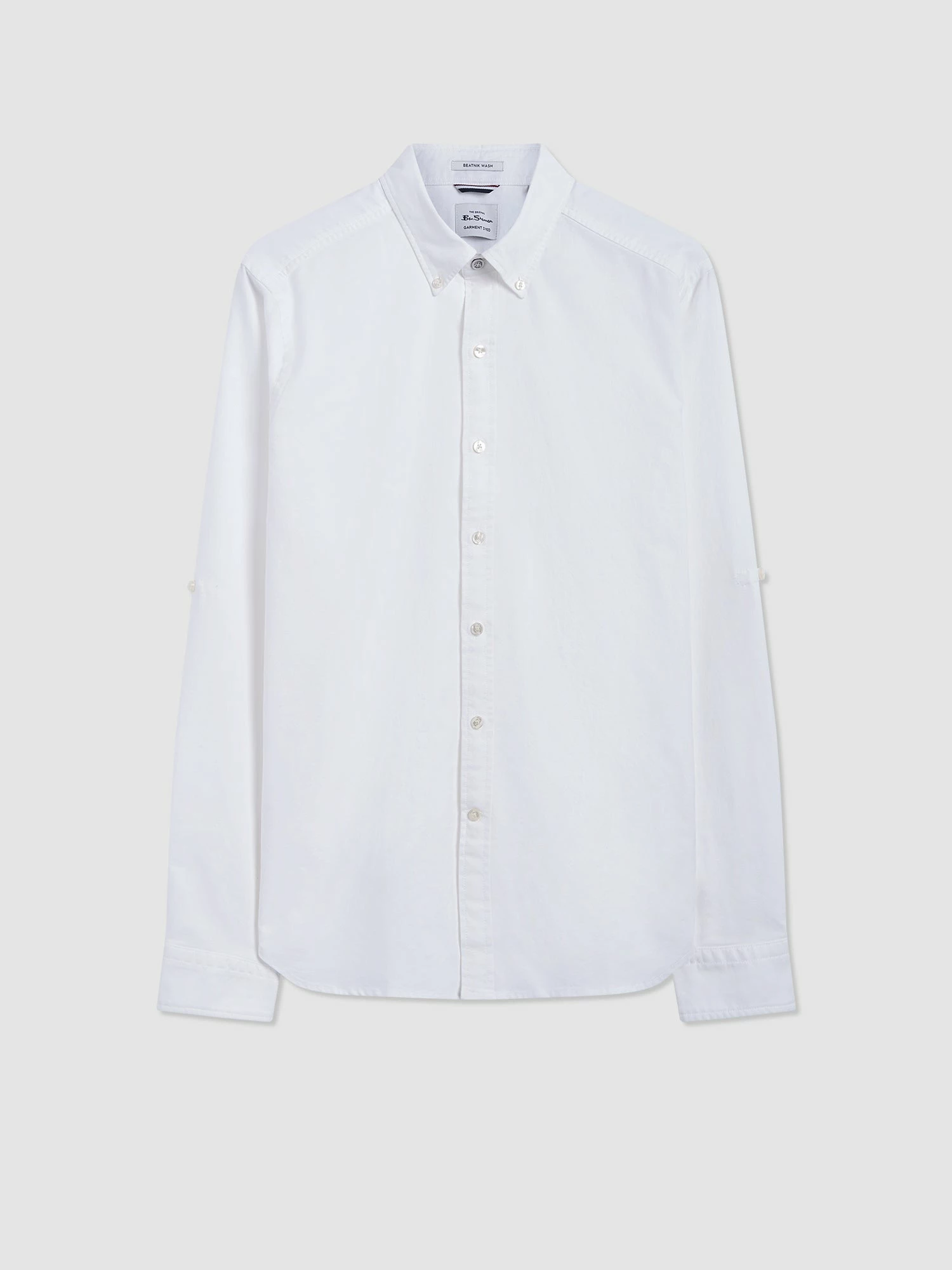 A new summer interpretation of the iconic Oxford. The St. Ives Resort Oxford Shirt is garment dyed, which achieves a super soft micro brushed hand feel. This shirt is styled with a rolled-up sleeve detail for those summer days at the beach. The button-down collar has our iconic two-finger collar in our best-selling mod fit. We kept the front clean of branding or embroideries, but our signature tab can be found at the side seam.