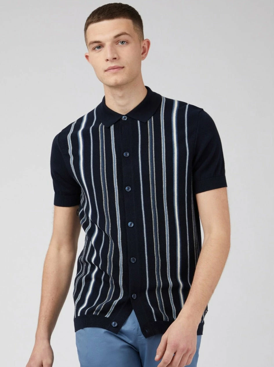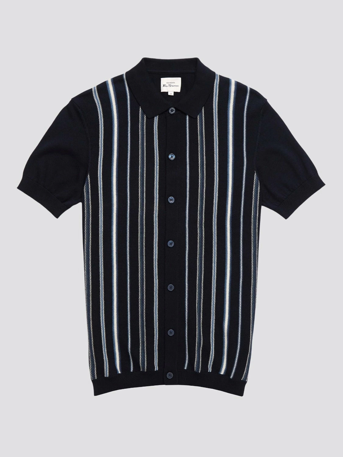Looking for a stylish and comfortable polo shirt that you can wear to any occasion? Look no further than the Striped Button-Down Knit Polo in Ivory from Ben Sherman.