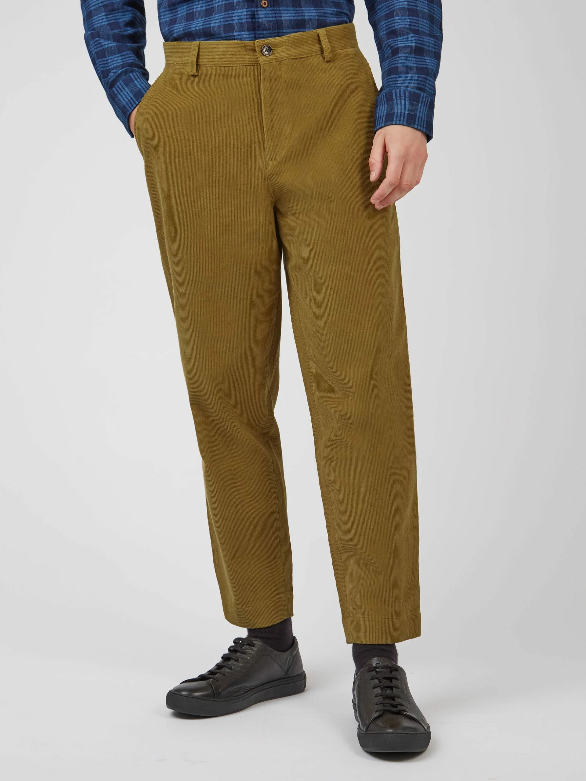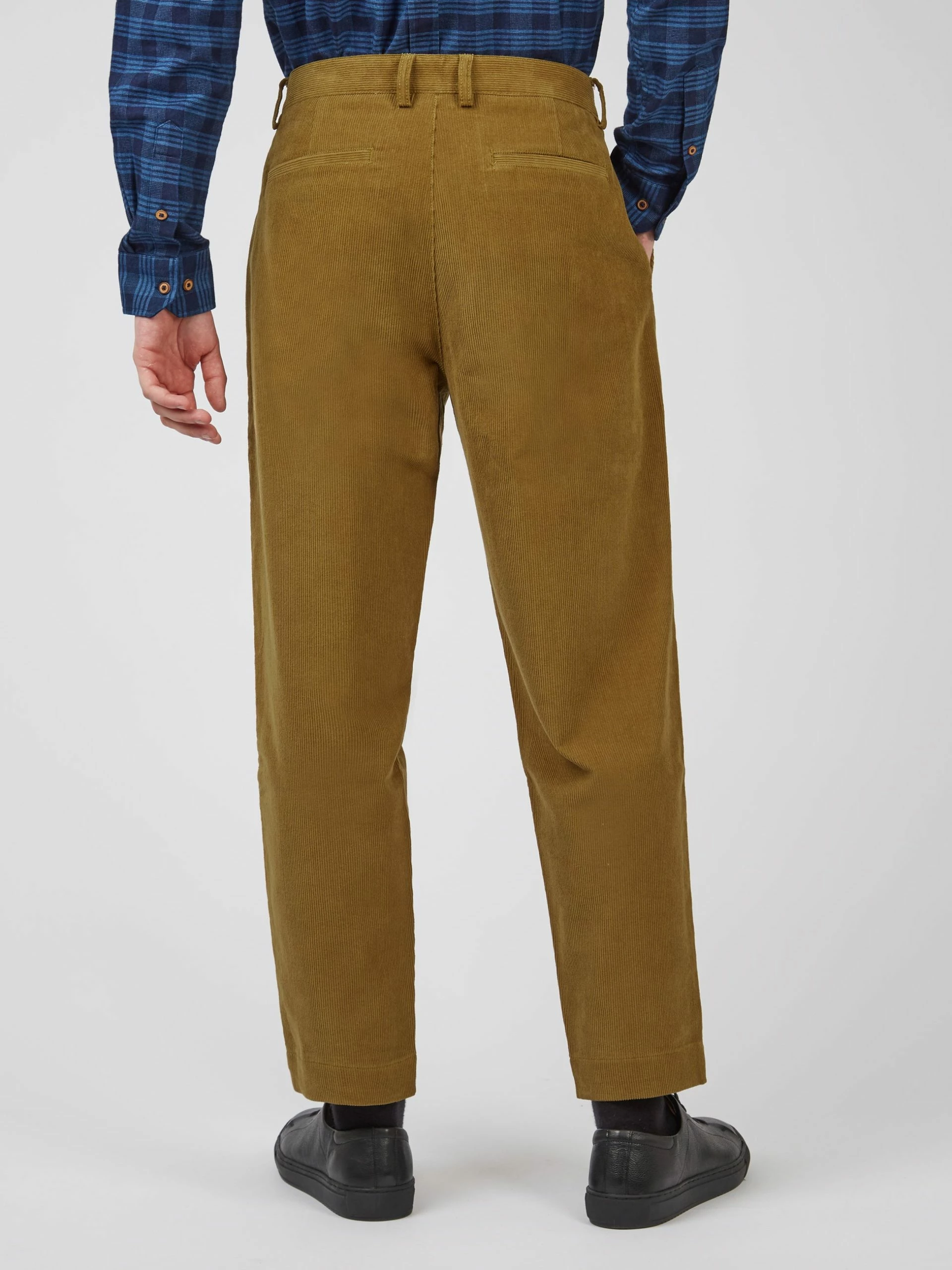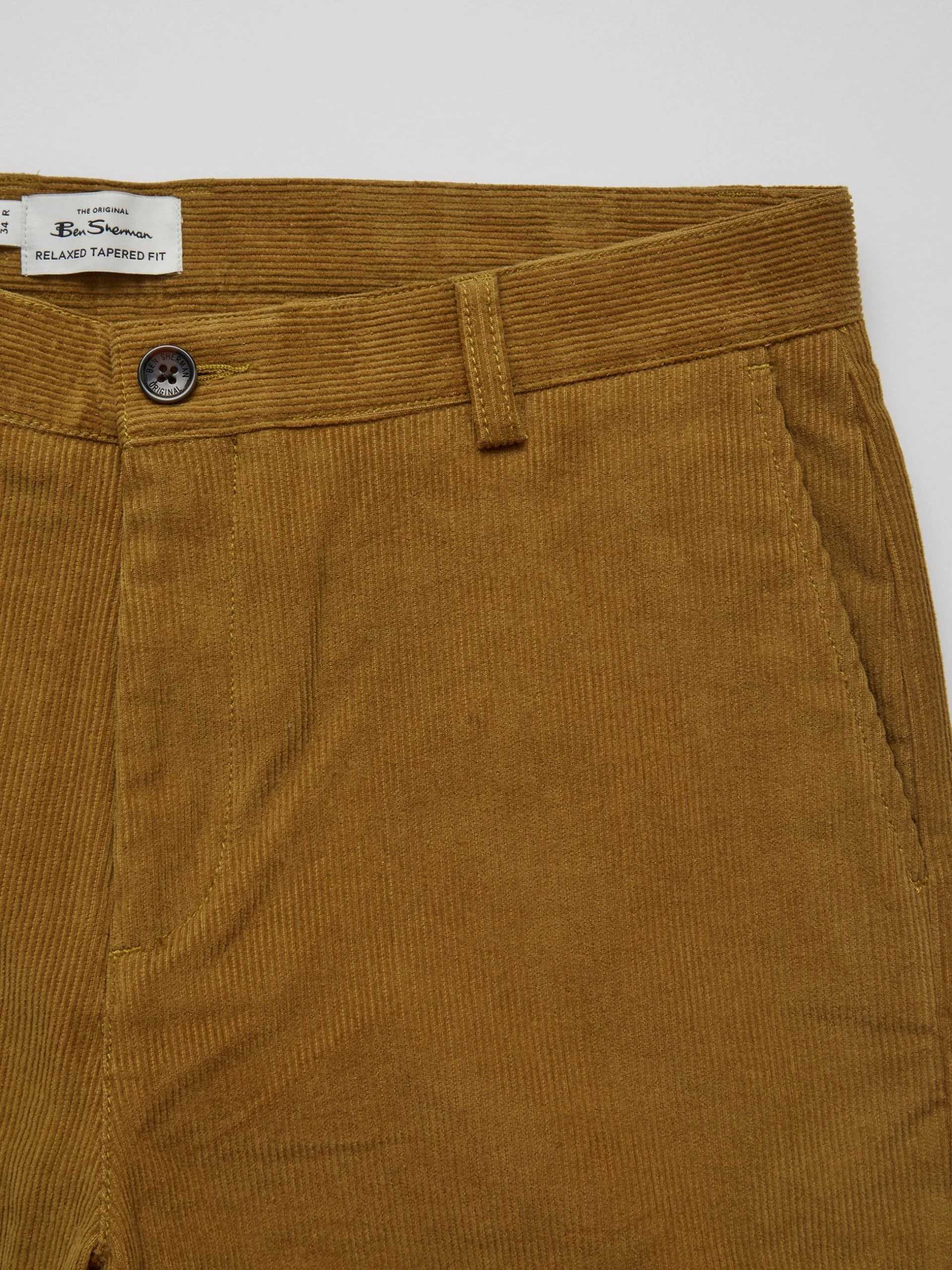 A relaxed taper fit trouser in a corduroy cotton fabric. Features include 2 front slanted pockets, 2 back welt pockets and ‘Ben Sherman’ branded buttons. 100% cotton.